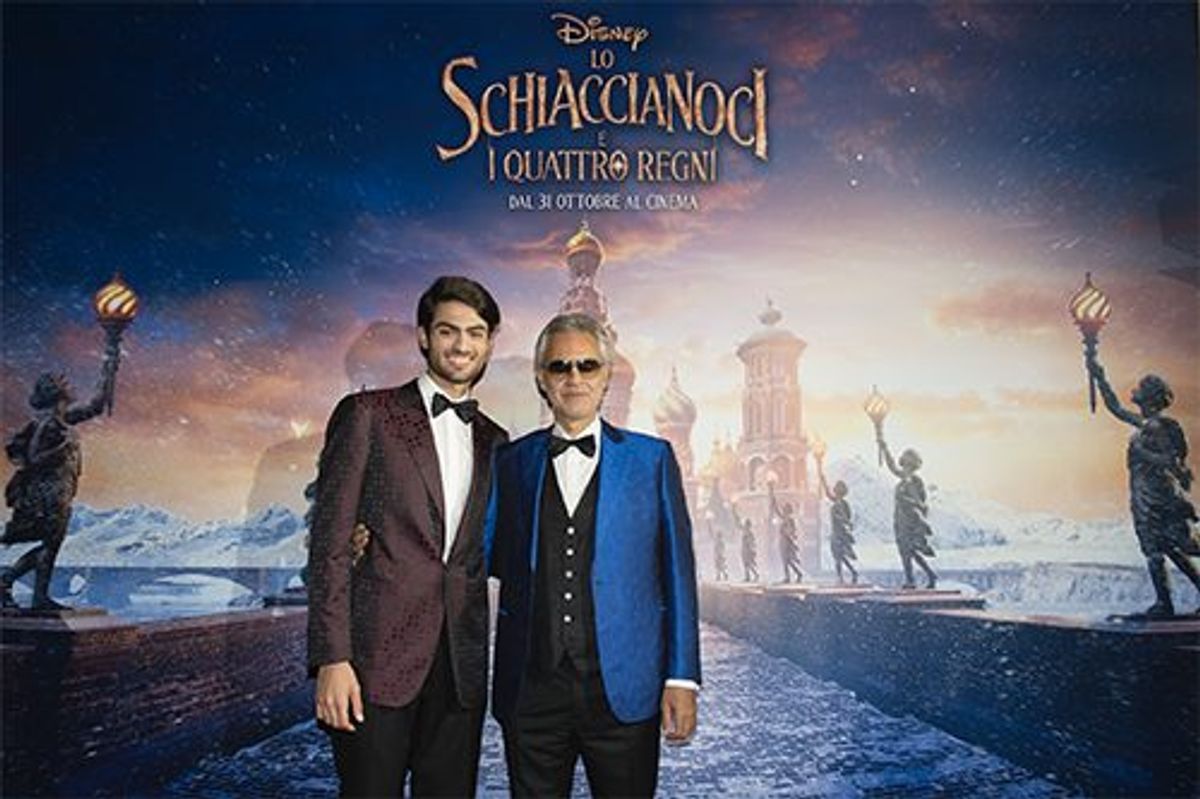 In vista dell'arrivo nei cinema di Lo Schiaccianoci e i Quattro Regni Andrea Bocelli e suo figlio hanno cantato un brano contenuto nel film ad un evento a Milano