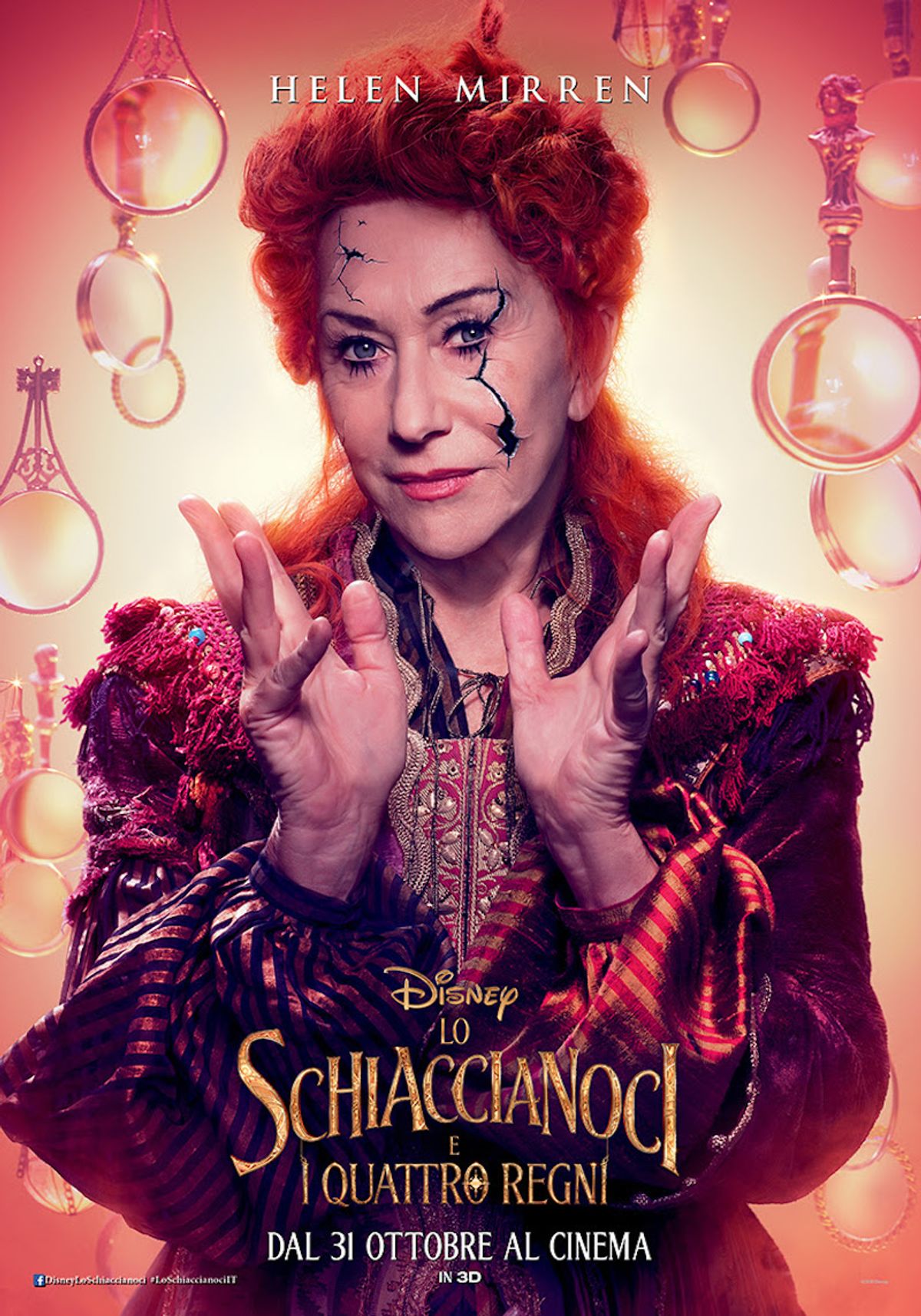 Iniziamo dalle locandine italiane, che ritraggono Clara (Mackenzie Foy), Drosselmeyer (Morgan Freeman), la Fata Confetto (Keira Knightley) e Madre Ginger (Helen Mirren), protagonisti dell'avventura live action che arriverà nelle sale italiane il 31 ottobre: