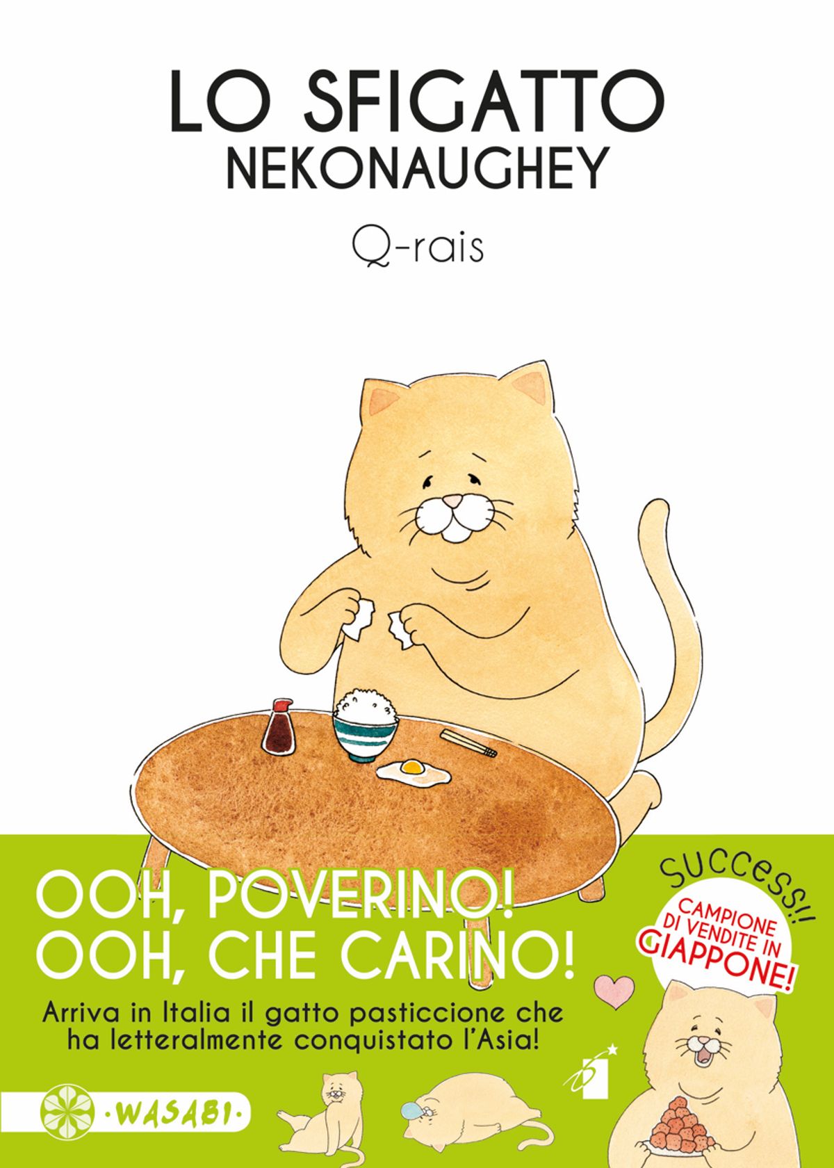 Succede a tutti, ogni tanto, e a qualcuno anche più spesso: torte che non lievitano, lattine che non si aprono, linguette che si strappano... piccole azioni quotidiane che proprio non ne vogliono sapere di riuscire come si deve. Ognuno reagisce a modo suo: c’è chi si infuria e comincia a inveire contro la sorte avversa e chi invece... rimane a fissare il misero risultato dei suoi sforzi con aria assorta e meditabonda, colma di una sommessa tristezza (e c’è sempre il dubbio che si sia addormentato...). Signore e signori, ecco a voi Lo Sfigatto, il paffuto e adorabile micione che con le sue piccole disavventure e la sua disarmante pacatezza ha letteralmente conquistato l’Asia!