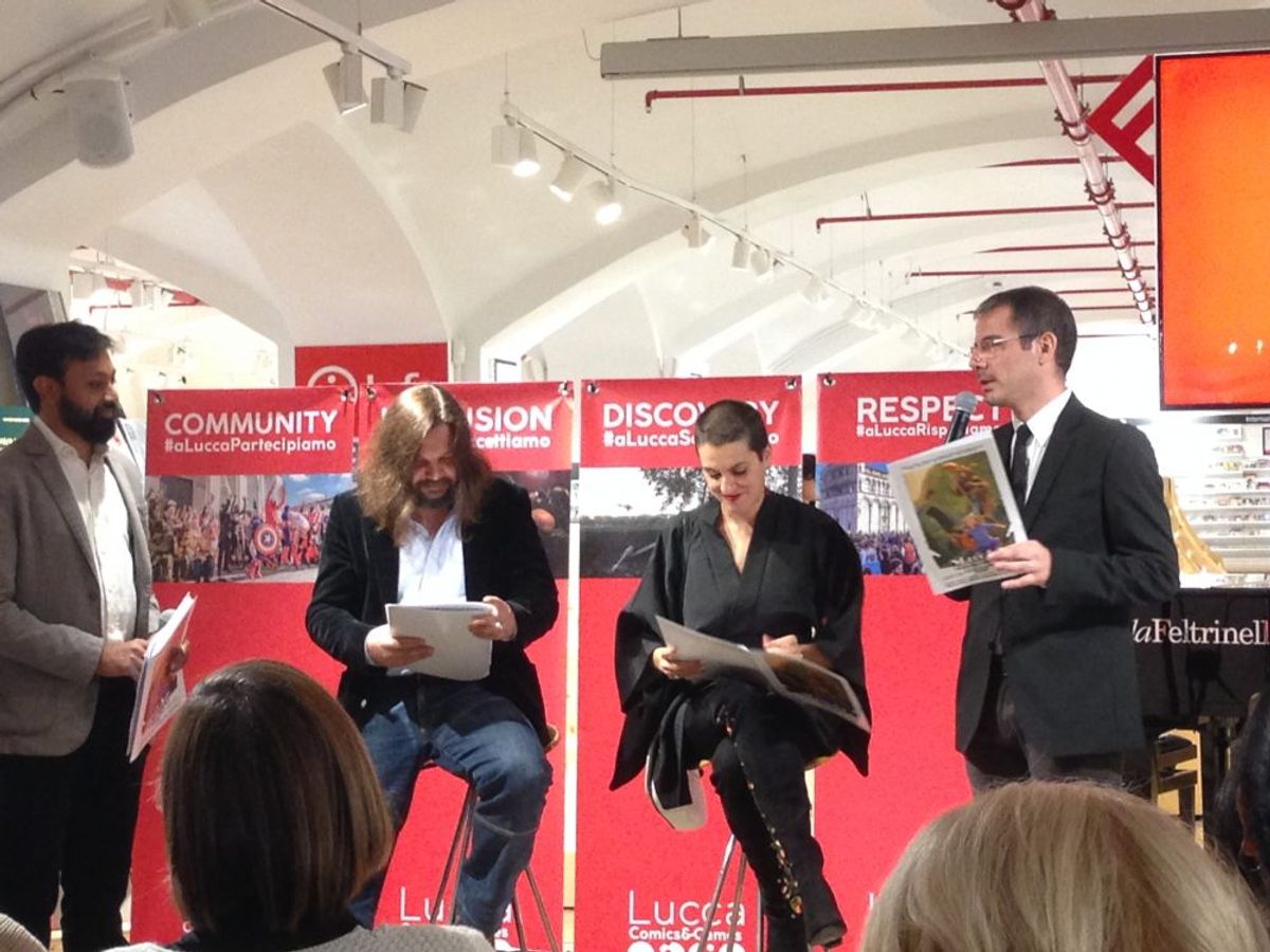 Presenti all'incontro, tra gli altri, il fumettista Giacomo Bevilacqua - che ha realizzato alcune vignette con Panda a tema Lucca, e la scrittrice Licia Troisi. È stata inoltre l'occasione per assistere a un breve frammento di Una ballata per Corto Maltese, drammatizzazione di Nicola Zavagli di Una ballata del mare salato di Hugo Pratt.