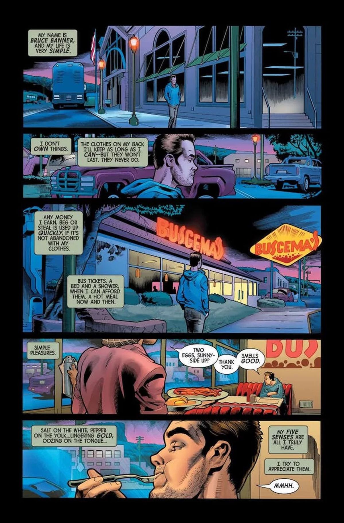 Bruce non si trova in un buon momento della sua vita, ora come ora. Dopo essere stato ucciso durante Civil War II, Hulk è tornato a dar sfogo alla rabbia, utilizzato come un'arma dalla Mano e dall'Hydra, e persino da uno degli Antichi dell'Universo, lo Sfidante. Quel che è emerso da questi eventi è Bruce ai minimi storici della sua esistenza.