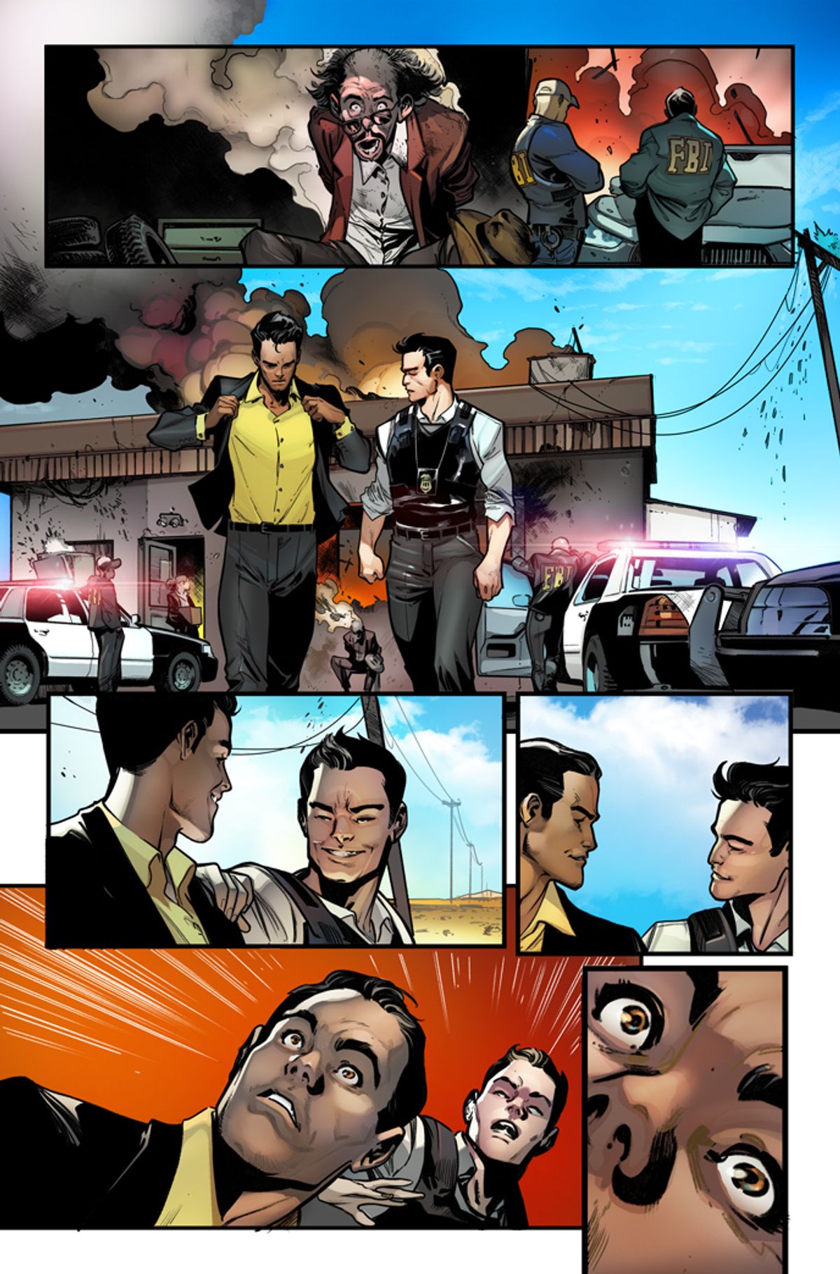 Zub - Pepe Larraz e David Curiel hanno davvero reso migliore il nostro lavoro di scrittura. Non importa quanto avessi immaginato epiche le scene: ogni singola volta le hanno portate a un livello superiore. Pepe riesce a mescolare posture incredibilmente dinamiche con una narrazione per immagini davvero solidissima. Le sue tavole hanno il sapore classico di una storia di supereroi piena di azione, ma realizzata con un gusto molto contemporaneo, cui David aggiunge l'atmosfera. Le loro pagine sembrano un film con un miliardo di dollari di budget.