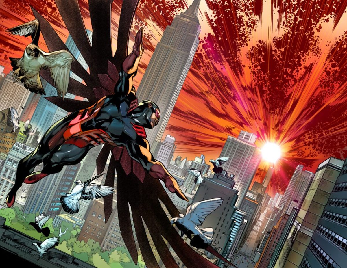 Waid - Non posso svelare altro, ma lasciatemi dire, essendo io quello che ha creato Triumph alla DC dando vita alla retcon definitiva, che un bravo mago non ripete mai due volte lo stesso trucco. Le teorie che ho letto online sinora sono lontane dallo svelare il mistero.Ewing - Captain Glory è un personaggio tutto nuovo, anche se potrebbe essere la versione dell'Universo Marvel principale del padre di Noh-Varr. Nel nostro primissimo incontro tra autori, lo definimmo come il Capitan America dei Kree, per costruirgli uno scheletro. Ma sono Jim e Mark che l'hanno reso un personaggio vero.
