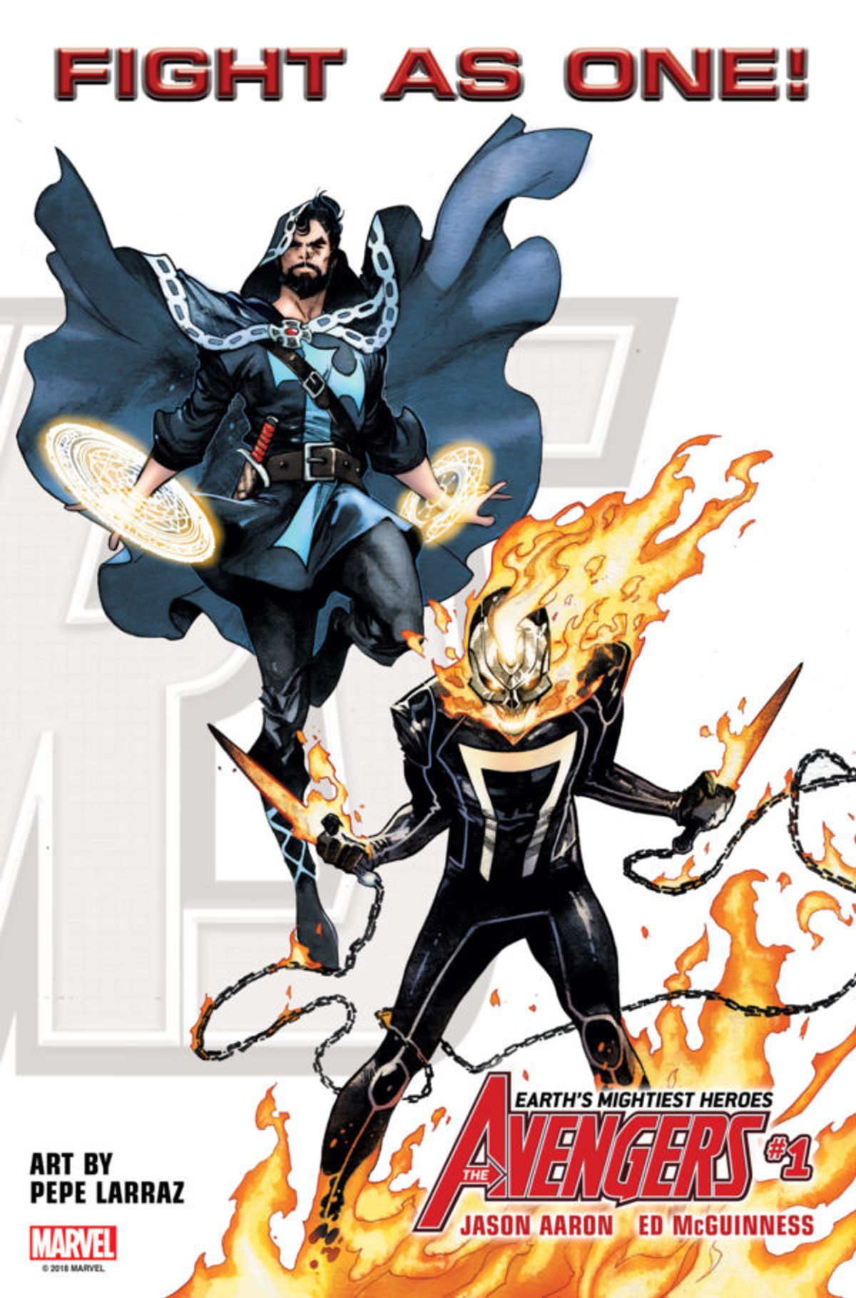Il primo di essi sarà Avengers #7, con le origini del Ghost Rider a cavallo del mammut, con Sara Pichelli alle matite. Ghost Rider fa parte della nuova versione degli Avengers per una ragione ben precisa, che sarà chiara, almeno parzialmente, al termine del primo arco narrativo, ma più che cercarne i motivi nelle recenti apparizioni del personaggio, sappiate che noi raccontiamo una storia tutta nostra e andiamo avanti per la strada che abbiamo scelto.Doctor Strange sarà con il gruppo nella prima storyline, ma non sarà un suo membro effettivo. Piuttosto, è il primo a sedere nell'ottavo seggio, il posto che vedrà seduti molti personaggi diversi, da ogni angolo dell'Universo Marvel, a seconda delle necessità. Quindi siate pronti a vedere altri volti sorprendenti. Per quanto riguarda la Guerra dei Reami che imperversa su Thor, con Jason Aaron alla guida di entrambe le serie, preparatevi a vedere le conseguenze di quel conflitto anche su Avengers.