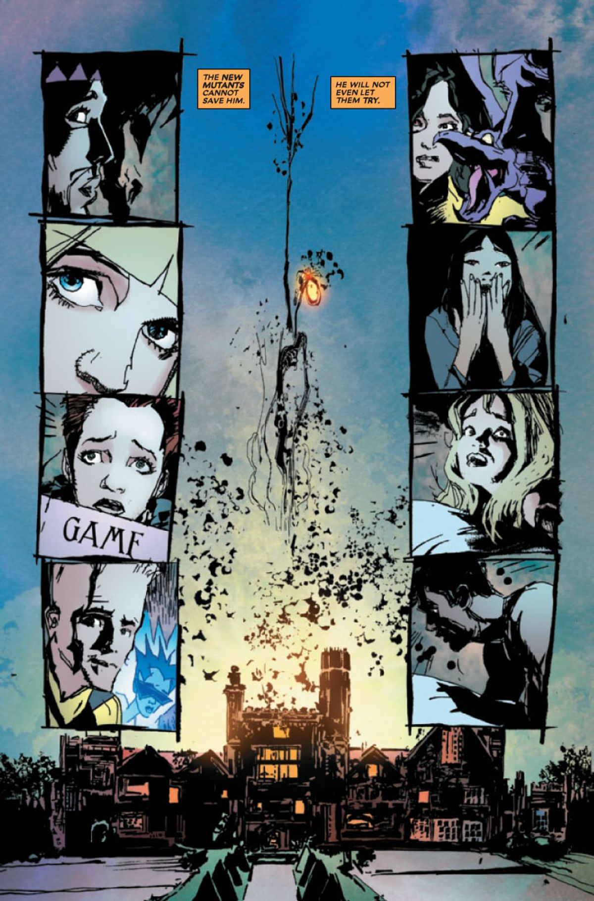 Ero molto trepidante al pensiero di rivisitare i Nuovi Mutanti, bisognava farlo per le ragioni giuste. Anche mentre consegnavo le pagine, mi veniva quasi da chiedere scusa, perché mi rendevo conto di avere grandissimi scrupoli sull’approccio che volevo utilizzare. Poi, quando ne parlai con Chris, finimmo semplicemente per parlare del nostro amore per quei personaggi e non semplicemente di provare qualcosa di sconvolgente o all’avanguardia, qualcosa di fine a se stesso.
