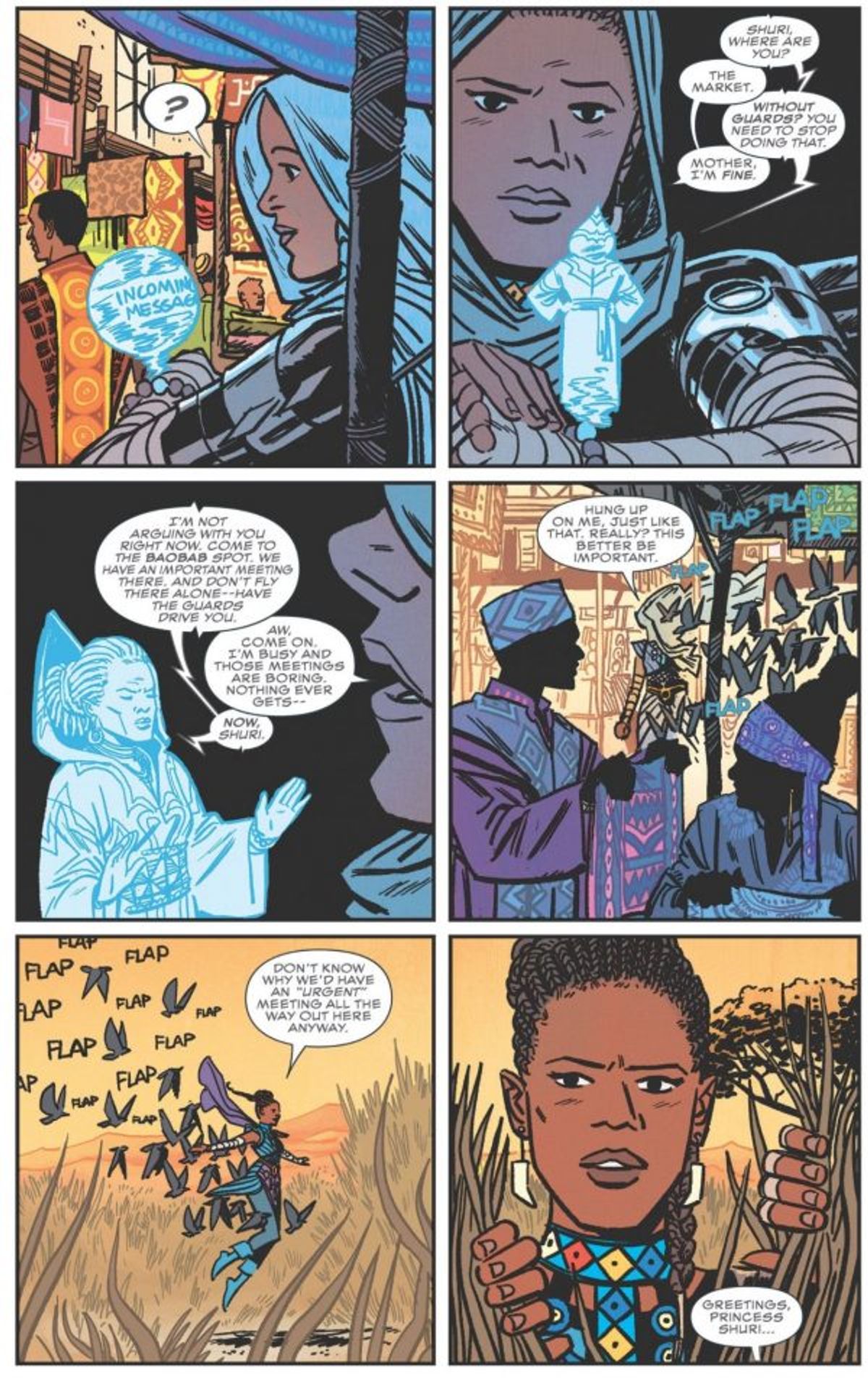 La prima debutterà tra pochi giorni con il primo numero di Shuri, nuova serie al via il prossimo 17 ottobre che avrà per protagonista la sorellina di T’Challa, la quale in passato ha indossato il manto attualmente sulle spalle del fratello. Il progetto sarà sceneggiato da Nnedi Okorafor (Who Fears Death, romanzo che diventerà una serie televisiva HBO), con Leonardo Romero (Hawkeye) ai disegni e le copertine di Sam Spratt. Ecco la sinossi e le prime pagine!