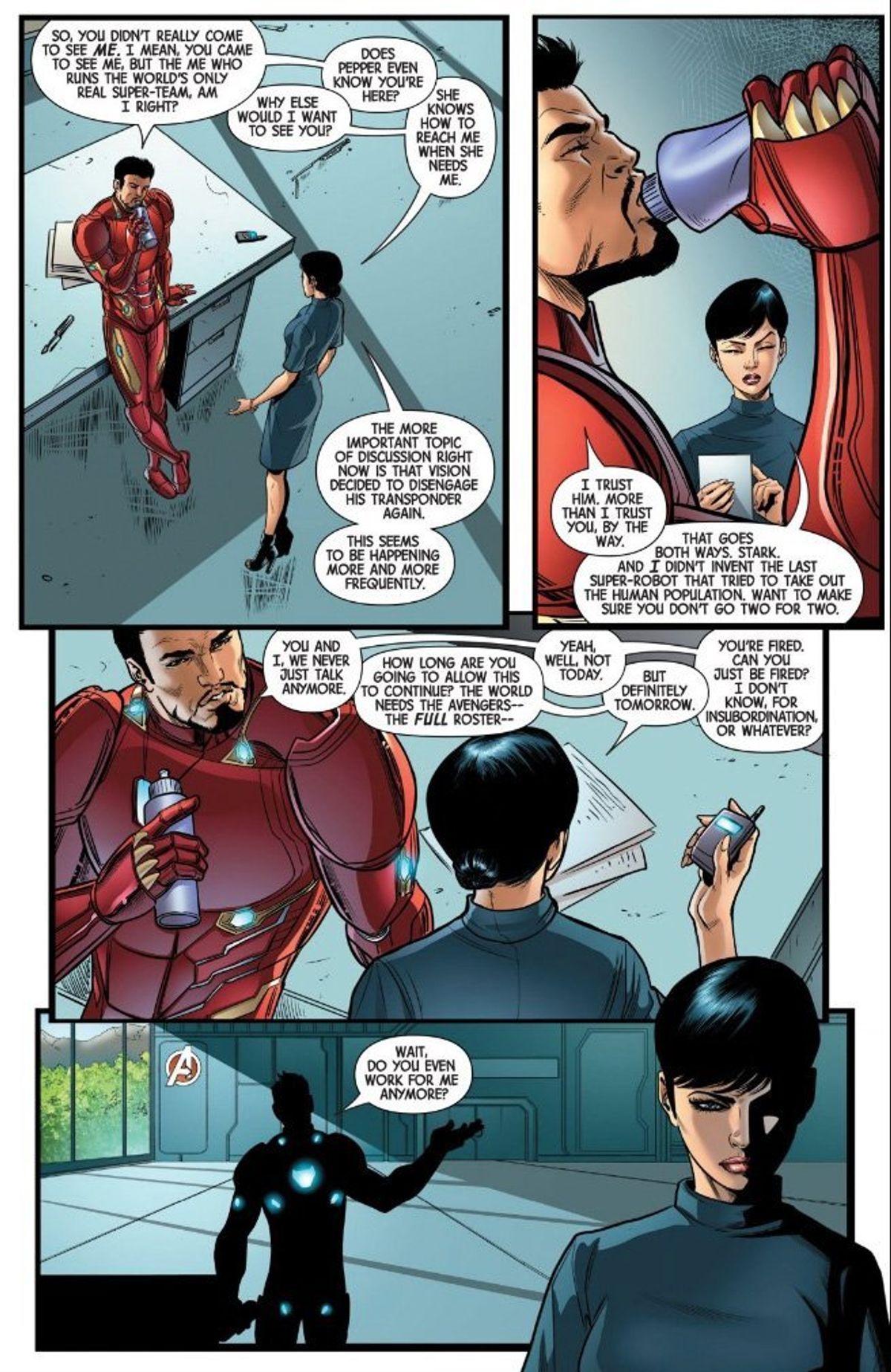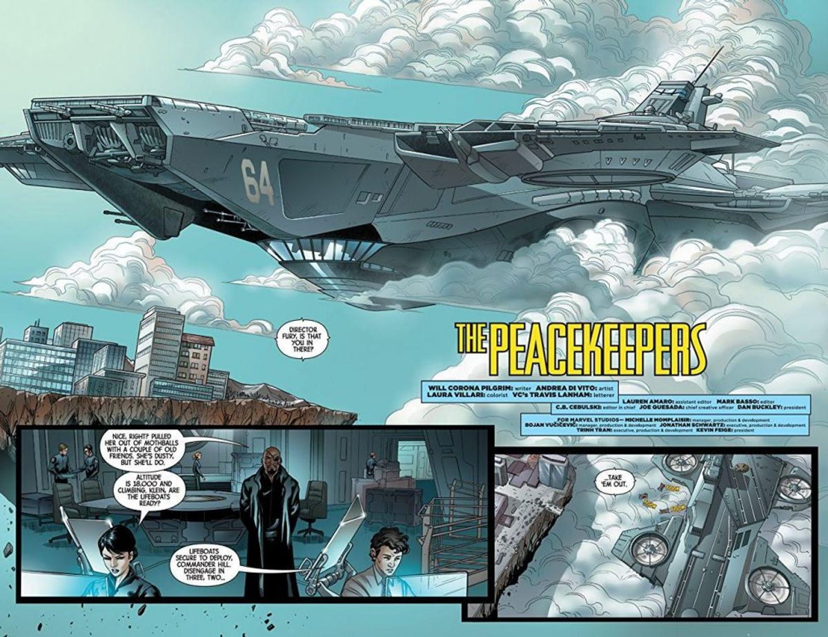 Successivamente, Fury parla con Capitan America di un imminente ed "enorme problema intergalattico". Anche l'agente Hill, a colloquio con Tony Stark, preme sull'acceleratore verso una riconciliazione. Secondo Iron Man, "oggi" non ci sarebbe una minaccia tale da portarli a chiarirsi, ma la donna gli risponde immediatamente che tale circostanza potrebbe presenatarsi "domani".I due incontrano anche gli altri Avengers, nel corso della storia, e il quadro appare piuttosto chiaro: c'è piena consapevolezza di un continuo avvicendarsi di enormi minacce spaziali e, allo stesso tempo, Capitan Marvel sembra rappresentare l'extrema ratio a cui nessuno vorrebbe far ricorso.