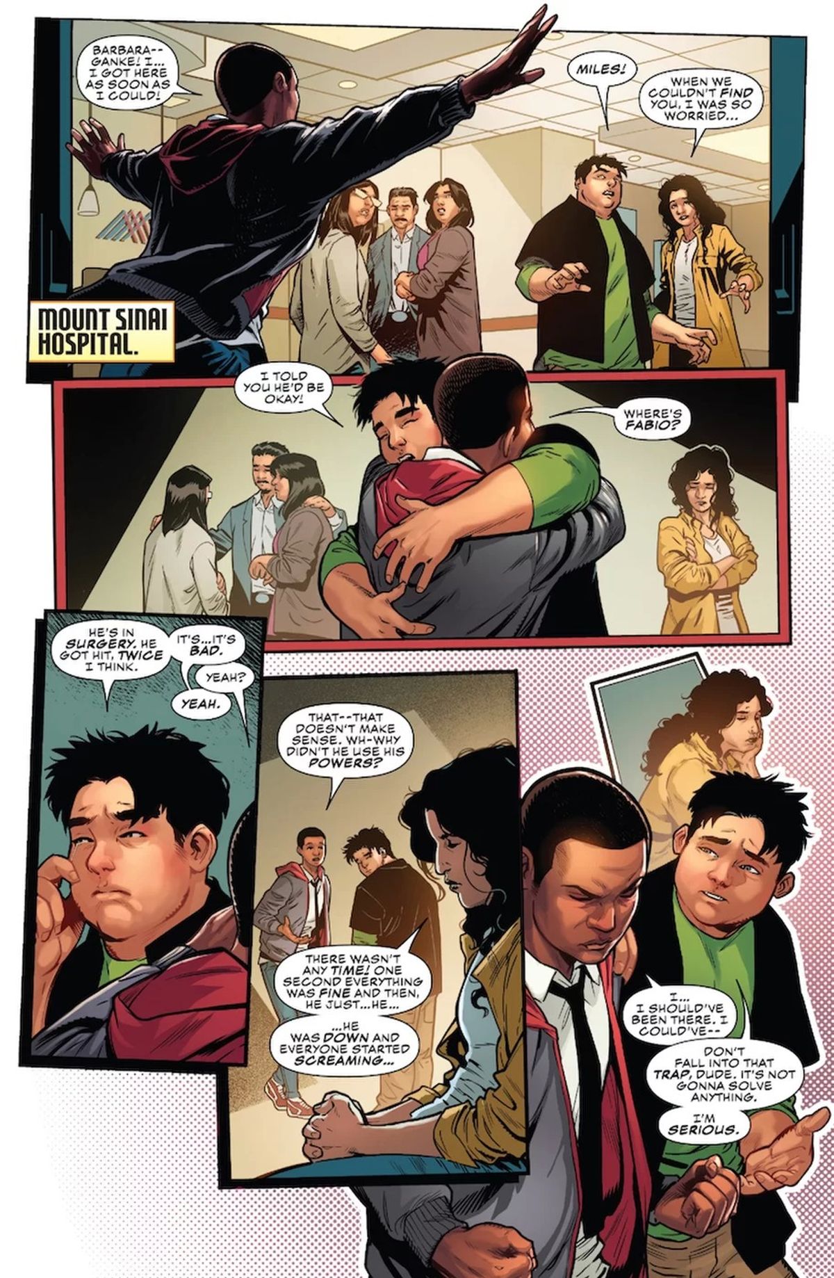 Non c'è stata alcuna esitazione propriamente detta nel realizzare la storia. Semplicemente, volevo evitare di affrontarla di fretta, e ci siamo tutti presi il tempo necessario ad assicurarci di avere qualcosa di importante da dire, invece di reagire istintivamente alle notizie. Per me, parla soprattutto dell'effetto che questo genere di eventi ha sulle persone e sulle loro vite, del modo in cui possiamo stare vicini al prossimo durante periodi difficili e traumatici, di quel che ci succede dopo, non durante la tragedia.E la cosa importante per me era dire qualcosa di significativo, e farlo senza che ci fosse soltanto un punto di vista. Voglio sottolineare che, da parte della Marvel, abbiamo avuto supporto alla nostra idea per tutto il percorso. L'ho proposta a Tom Brevoort nella prima metà dell'anno e lui non si è fatto spaventare, mi ha fatto capire che io posso proporgli ogni genere di storia, non importa quanto sia folle.