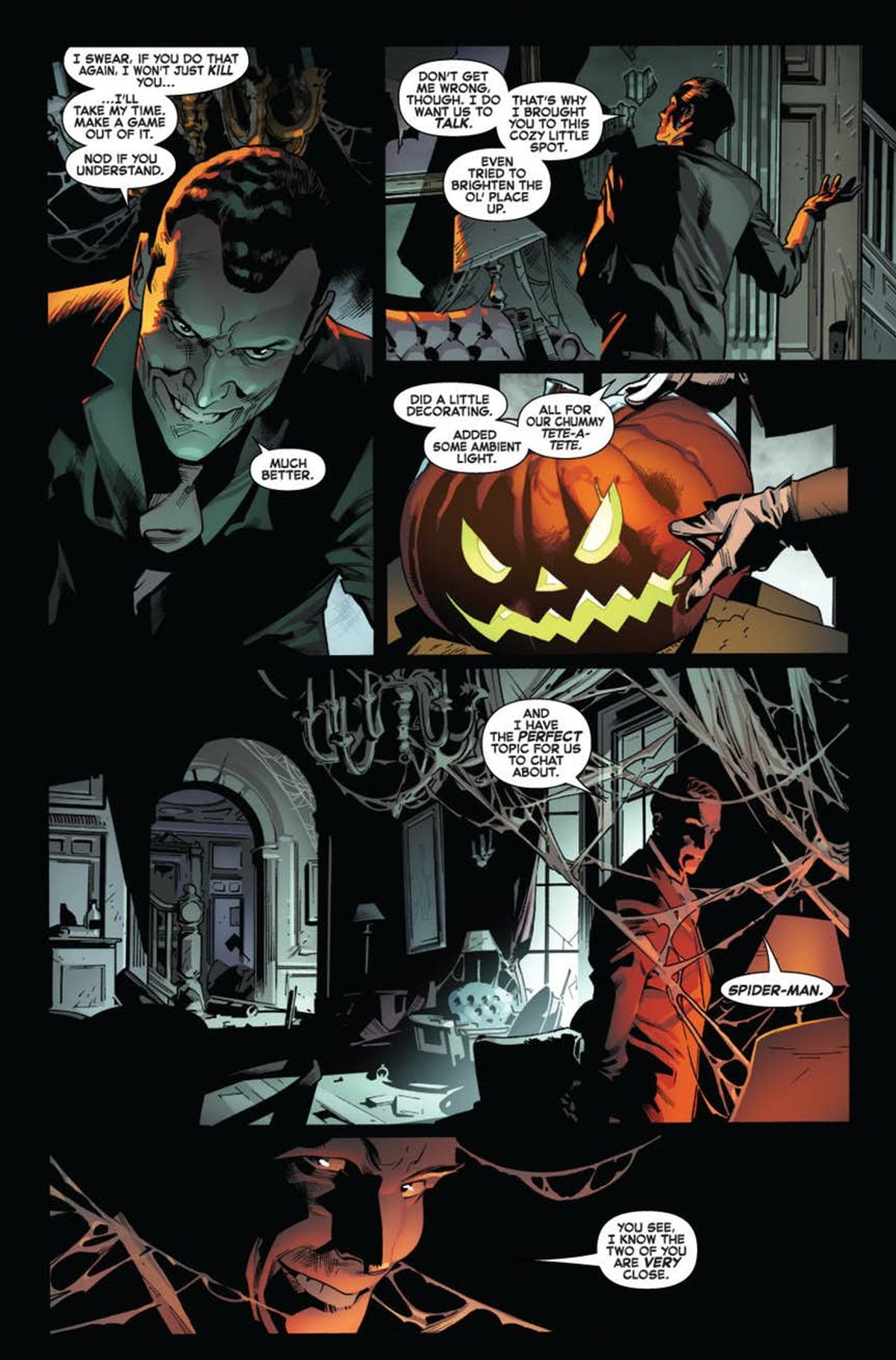 E la stessa cosa è successa con Carnage. All'inizio della mia gestione di Amazing, avevo in mente una grande storia con lui e Venom, ma erano bloccati in miniserie varie. Il che va bene. Fa tutto parte del magico mondo delle major e degli universi condivisi. Dato che ho usato poco Norman e non avevo mai potuto toccare Carnage, quando si avvicinava il finale del mio lungo ciclo sapevo di voler prendere per me i due giocattoli più belli che non mi ero mai potuto concedere. L'incontro tra i due e le loro rispettive forme di follia doveva essere la mia esplosione finale.