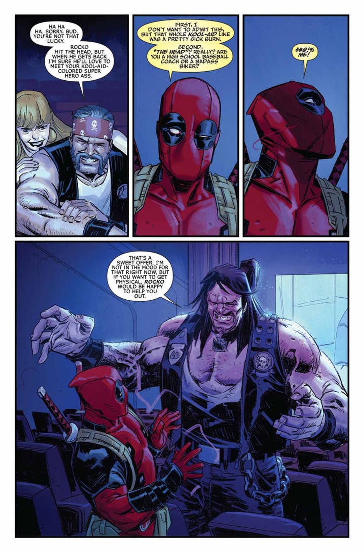 Di seguito trovate la sinossi e un'anteprima di Deadpool #1:Skottie Young e Nic Klein vi propongono i folli racconti del Rigenerante Degenerato! È da un po’ che Deadpool deve fare il mercenario per sbarcare il lunario, ma le cose stanno per complicarsi. Mentre Deadpool cerca di rimettere in piedi il suo business come un umile mercenario in cerca di lavoro, una minaccia catastrofica così immensamente grande e fuori di testa da sfuggire a ogni definizione si avvicina alla Terra, dove ci sarà solo una persona in grado di fermarla! Oh no, aspettate… non è Wade, vero? Oh, %$@#. È Wade!