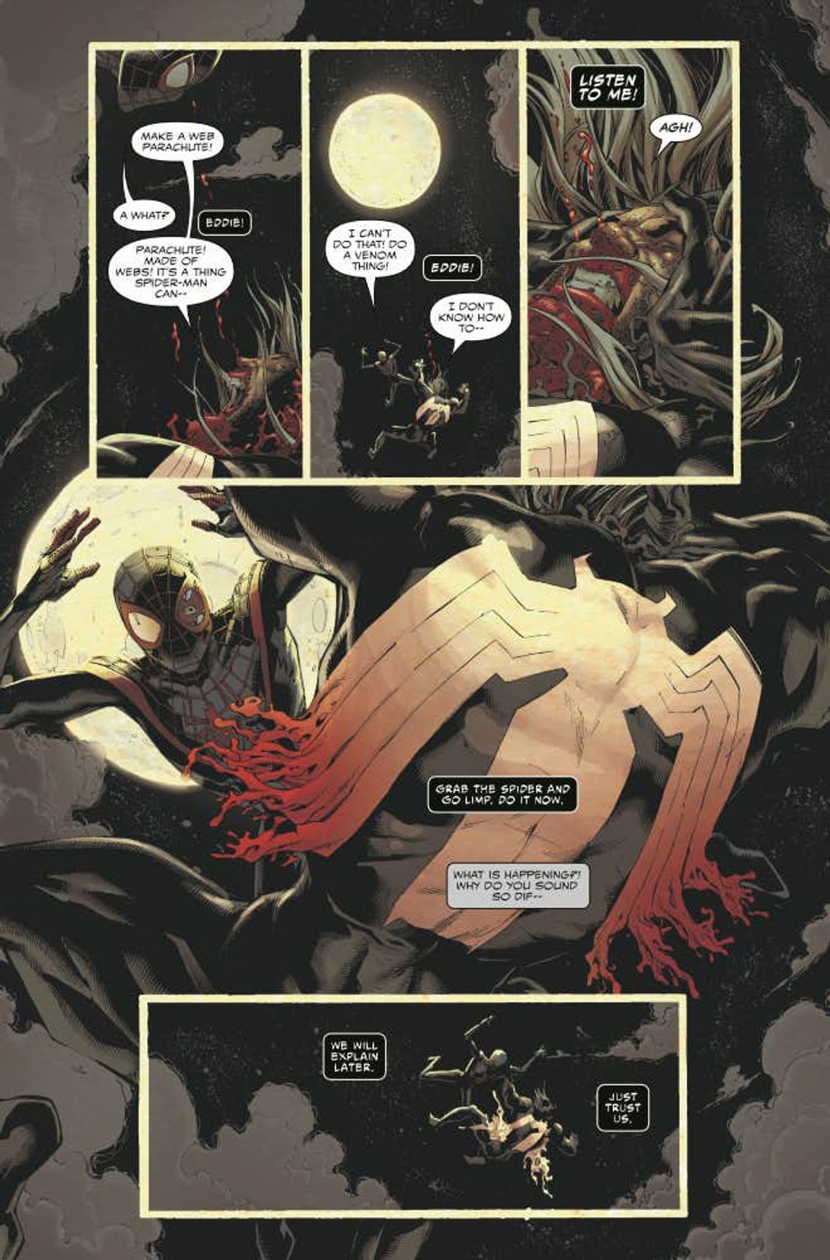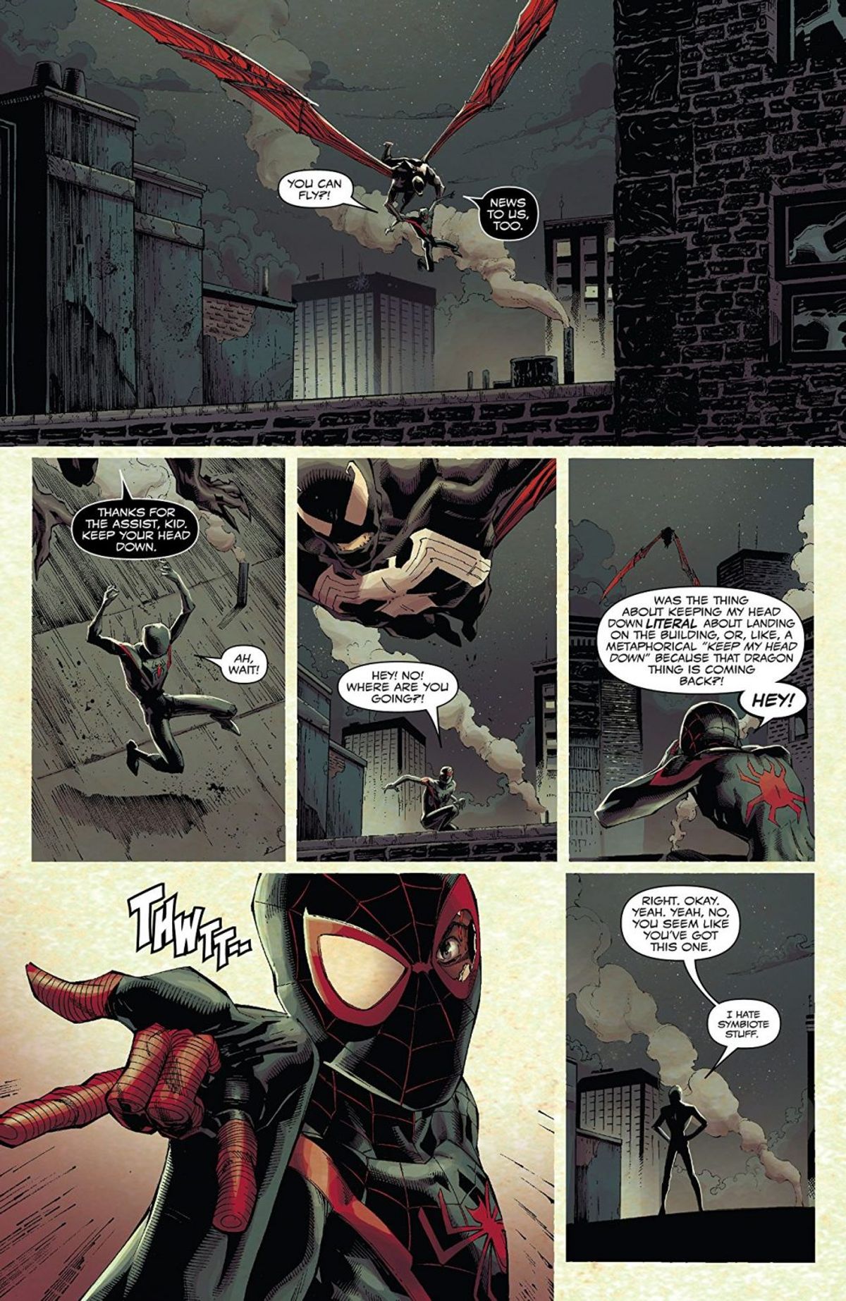 Eddie Brock si sta abituando lentamente e con grande sorpresa a questa nuova possibilità. Le ali hanno fatto la loro comparsa per la prima volta mercoledì scorso, sulle pagine di Venom #5, mostrate sia sulla copertina dell'albo che negli interni diffusi dalla Marvel.Di seguito trovate la sinossi e alcune pagine dell'episodio: