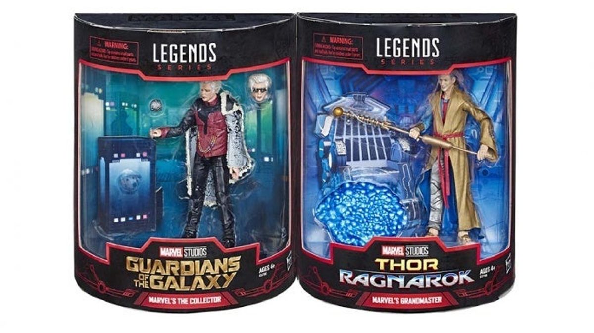 Le figure in questione, della serie Marvel Legends, sono quelle del Collezionista e del Gran Maestro, personaggi interpretati rispettivamente da Benicio Del Toro (Guardiani della Galassia) e da Jeff Goldblum (Thor: Ragnarok).