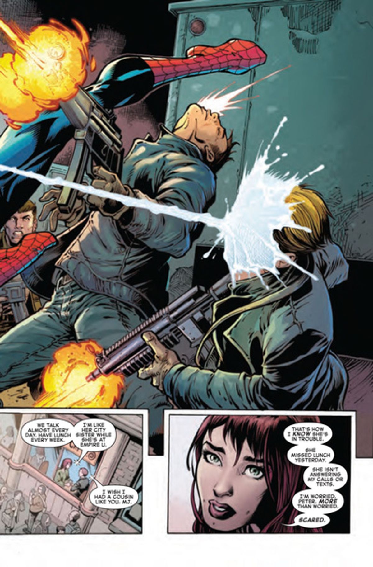 La mia storia ripesca un cattivo della Marvel che non ho mai disegnato prima e, anche se è presente Mary Jane Watson, non la vediamo con la capigliatura vistosa che aveva negli anni Novanta. Per me questo è sì un ritorno a sapori familiari, ma con delle varianti.Mi ricordo che all'epoca mandavo il mio portfolio a destra e a manca. Stavo disegnando DNAgents per la Eclispe Comics quando Jim Salicrup, l'editor di Amazing Spider-Man, mi disse che aveva bisogno di un rimpiazzo. Ero ben felice di mettere almeno un piede di traverso nella porta della Marvel. Mi chiamò dopo aver ricevuto il mio portfolio, ed era fatta: disegnai Amazing Spider-Man #287.
