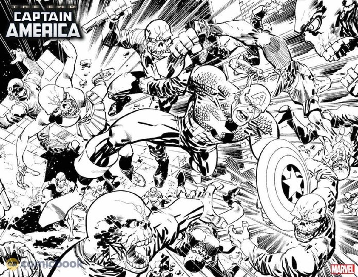 Ci sarà qualche sorpresa lungo il percorso, ma la vera arci-nemesi di Cap è il Teschio Rosso. Concludere la storia con l'Armadillo, Spezzabandiera o l’Acrobata non sarebbe stato un bel climax. Però non è una storia tradizionale sul Teschio Rosso. In essenza, la sua tossina è mutata in un virus e tutti si sono trasformati nel Teschio Rosso. Il mondo intero dà la caccia a Capitan America per ucciderlo, e Cap diventa l’ultimo uomo sulla terra... l’ultima speranza dell’umanità.Capitan America ha sempre rappresentato il sogno americano... non necessariamente la realtà americana. È un ideale. È ciò che tutti noi vorremmo essere, e come tale combatte per preservare, proteggere e restaurare l’America e la democrazia in tutto il mondo. È un combattente per la libertà, e fintanto che c’è un sogno per cui combattere, condurrà quella battaglia. Ma è anche qualcosa di più di un simbolo: è un uomo, e questo aspetto è una parte importante del suo fascino. Questa sarà una storia di Cap in tutto e per tutto, e non voglio ingorgarla con apparizioni speciali o parlando del destino degli altri eroi Marvel. Ci concentriamo su Cap.