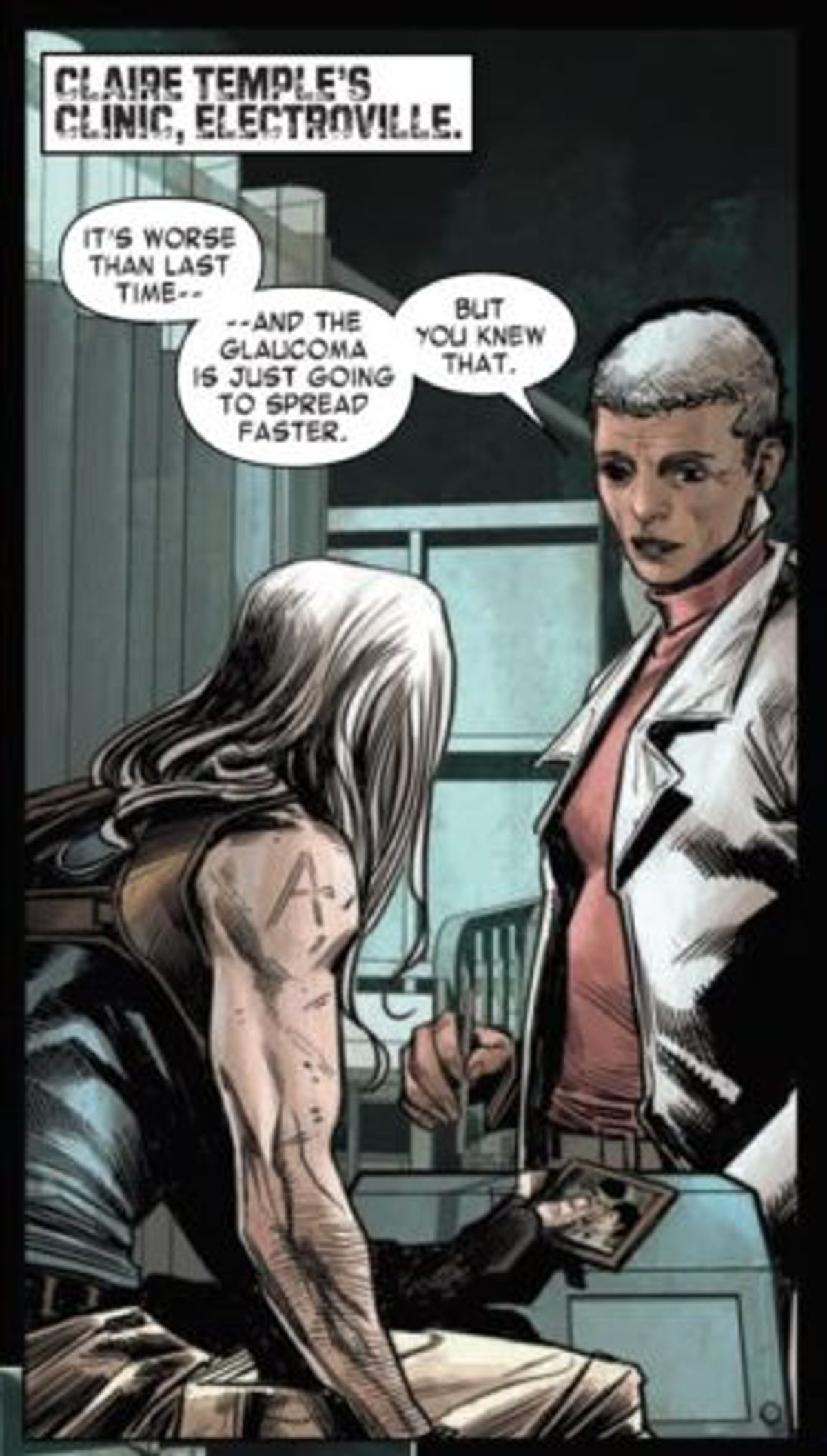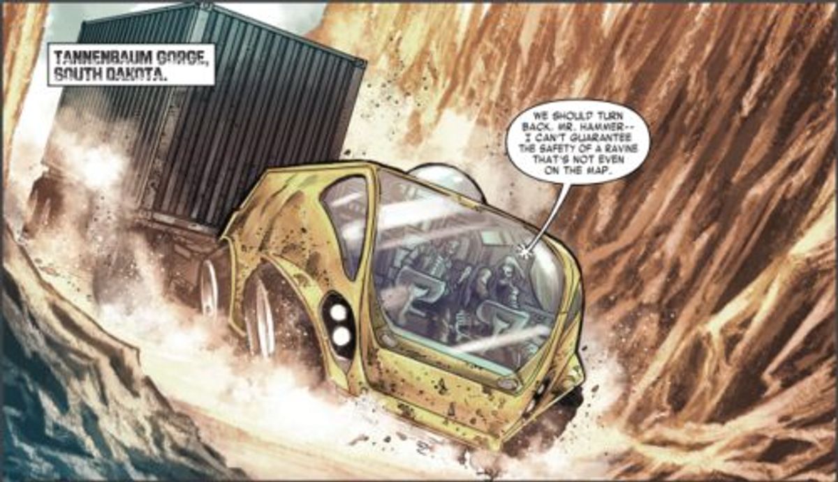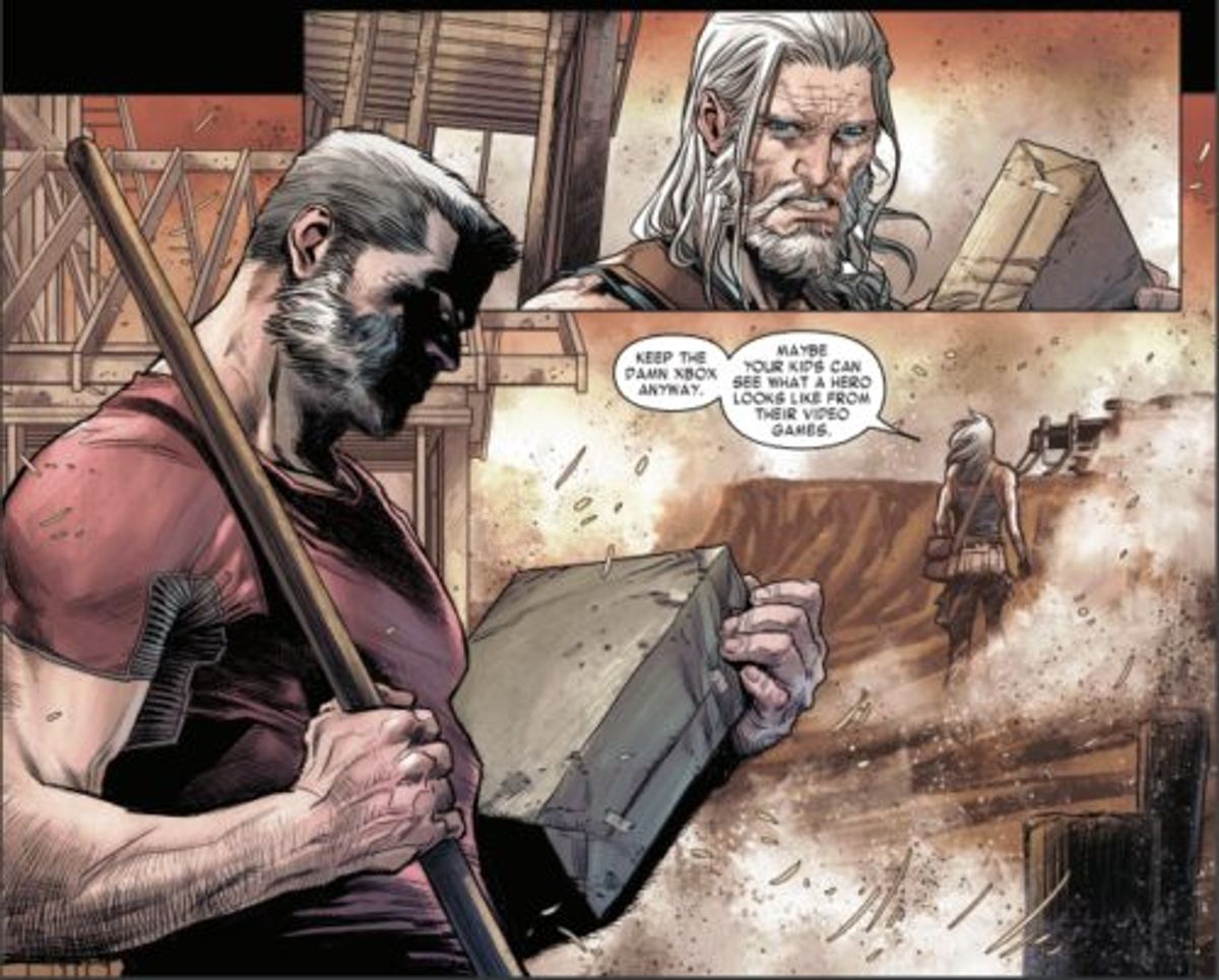La mia idea iniziale era di ambientare la storia cinque anni prima di Vecchio Logan, quando Clint sta perdendo la sua vista, per assistere alla sua difficoltà. Soffre del senso di colpa del sopravvissuto, dato che è uno dei pochi eroi che sono ancora vivi, mentre altri, che considera migliori di lui, sono morti. Cerca un modo per pagare i suoi debiti, ma in cui suo sa di essere impotente. Quando si rende conto che sta per perdere la vista, decide che c'è qualcosa che può fare: vendicarsi di uno specifico numero di persone, che non posso rivelare ancora, prima che il suo tempo finisca.Una delle cose che ho amato di Vecchio Logan è vedere i nipoti di Hulk che volano nella Fantasticar, quindi ho pensato a cosa sarebbe stato dei vari stupefacenti veicoli nell'orribile futuro che la storia propone. Durante una scena della prima pagina del numero #1, i protagonisti guidano un veicolo tratto dalla serie Force Works del 1990, il Force Wagon. Nel futuro, viene usato da un mercante di droghe illegali per i suoi traffici. Inoltre, passano attraverso Tannenbaum Gorge, un riferimento a Dottor Tannenbaum, un oscuro cattivo della Marvel. I migliori hanno città e regioni che portano il loro nome, lui un passo di montagna disabitato e franoso. Non è riuscito nemmeno a battere i Vendicatori dei Grandi Laghi. Se ci sono dei suoi fan là fuori, chiedo scusa.