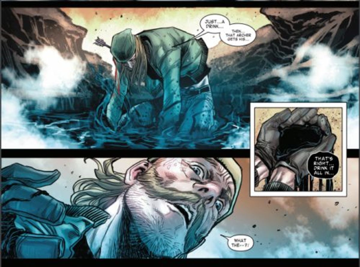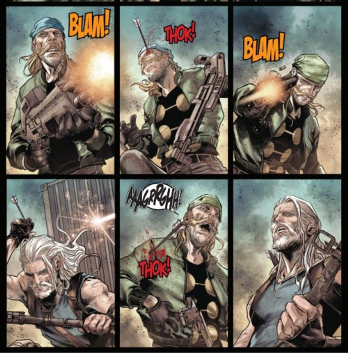 In apertura della storia, Occhio di Falco gestisce un servizio di sicurezza per mercanti. In questo caso, la sua ciurma finisce in un'imboscata della Madrox gang, che poi vediamo in tutta la sua gloria. Negli anni, abbiamo spesso pensato che l'autoclonazione avrebbe fatto dimenticare a Jamie la sua identità e che questo avrebbe fatto nascere una personalità del tutto diversa. Era la copia di una copia di una copia, ed ora è andato a male. Mi piace l'idea di renderlo un'intera banda di criminali che, ogni volta che un suo membro viene ucciso, ne crea tanti altri dal nulla. In più, la scena ha il compito di mostrarci Occhio di Falco, uno che non manca mai il bersaglio, sbagliare mira. Cosa che avrà poi delle conseguenze.