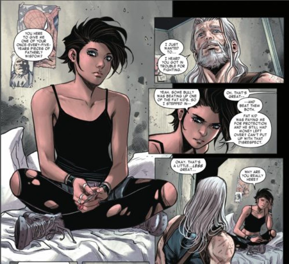 Sacks ha quindi parlato del ruolo di Logan nella storia. Senza scendere troppo in particolari, possiamo dirvi che sarà costretto a dare una grossa delusione a Occhio di Falco, che lo considera il suo migliore amico in assoluto. Inoltre, il cattivo della miniserie viene rivelato nel primo numero: si tratta di una fusione tra Jamie Madrox e Venom. Che sviluppi porterà mettere assieme i poteri dei due?