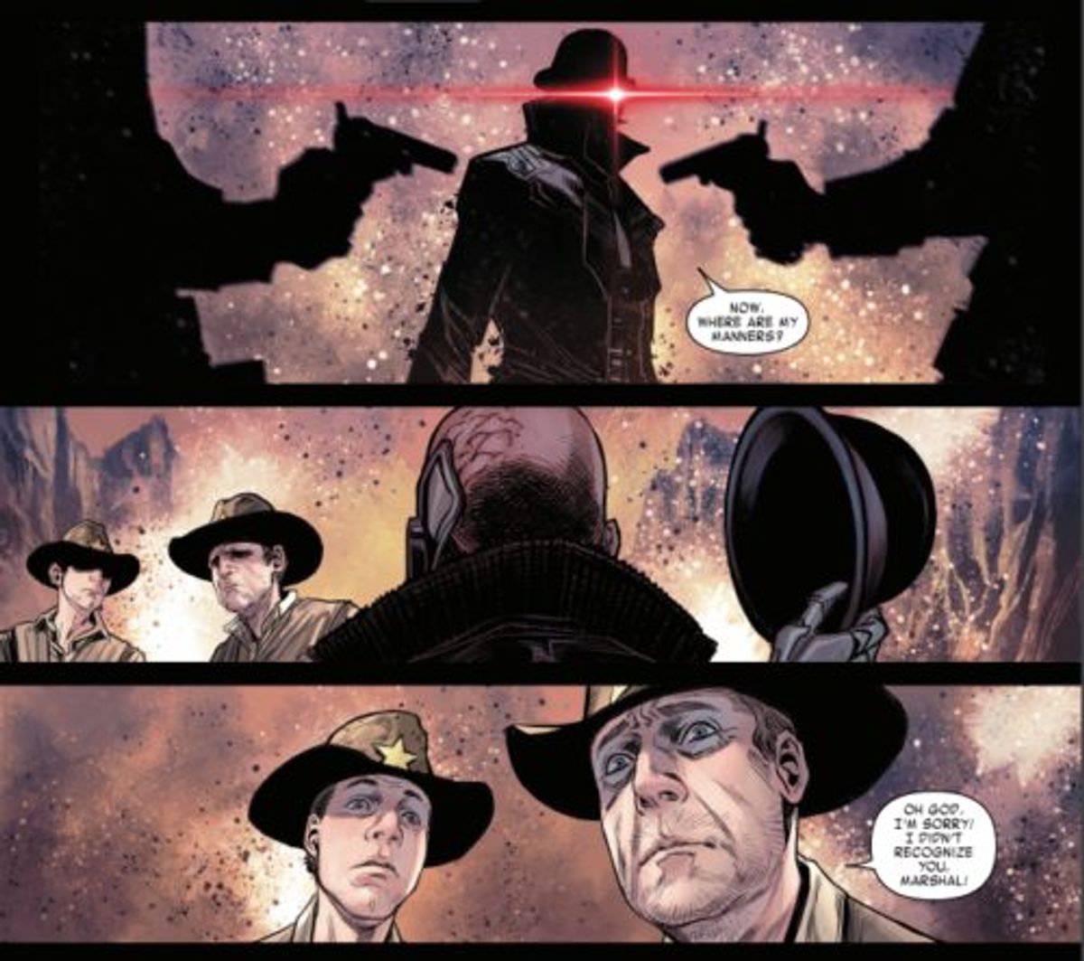 Il mondo creato da Mark Millar e Steve McNiven permette di creare situazioni opposte rispetto alla norma, perché sono i cattivi a governarlo. Quindi sono loro a occuparsi di alcune funzioni fondamentali. Ed ecco che abbiamo un grande antagonista a svolgere quella di Marshal, di forza della legge. Una volta che sarà di dominio pubblico il ritorno di un vero supereroe, spetterà a lui dargli la caccia come a un criminale. Ho implorato i miei editor di lasciare che gli dessi i potenziamenti di Deathlok. Volevo che il lettore sapesse che questo cattivo è più potente di Occhio di Falco.