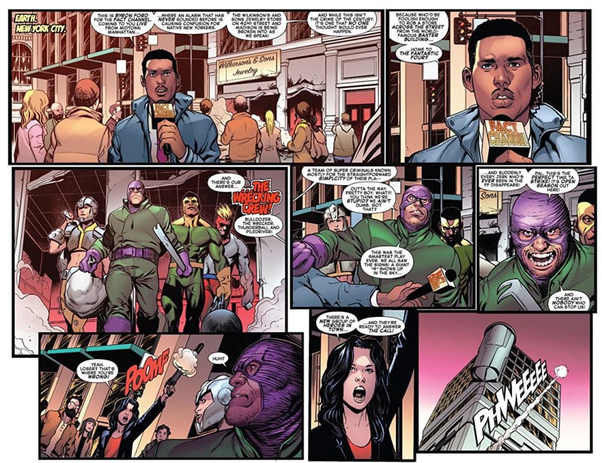 Il debutto sembra posizionare questi nuovi personaggi tra le fila dei "buoni": durante la rapina in una gioielleria di New York da parte della Squadra Distruttrice, tra la folla è presente una donna in abiti civili ("complice" dei Fantastix?) che dà l'allarme sparando in cielo un razzo segnalatore; chiamata a cui rispondono rapidamente i nuovi inquilini del Baxter Building, con un ingresso in scena in grande stile. Bulldozer, Piledriver, ThunderballDemolitore sono evidentemente degli avversari poco impegnativi per i presunti eroi, che a prima vista sembrano più interessati a ricevere attenzioni che concentrarsi sullo scontro.