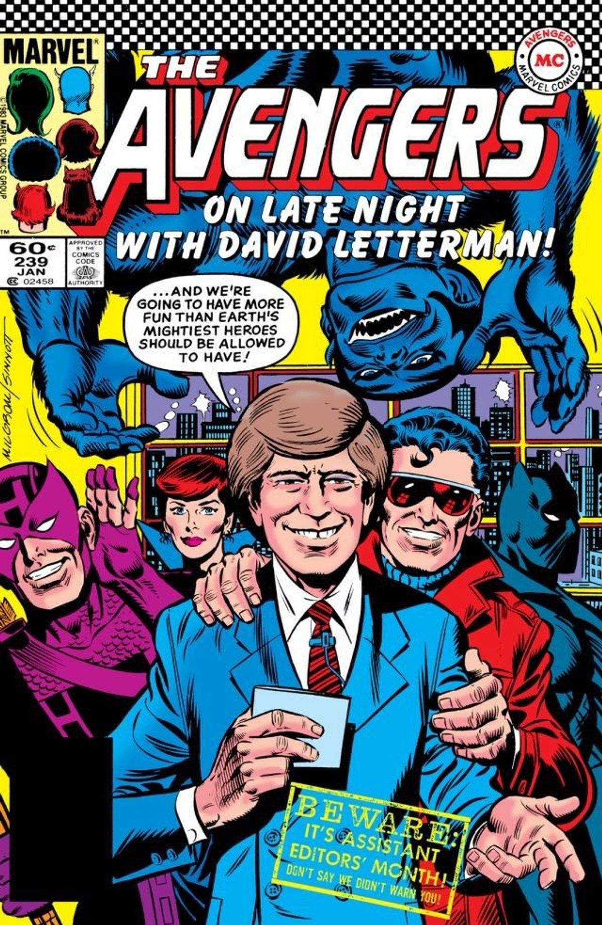 Non è la prima volta che un Occhio di Falco è ospite di un late show, visto che Clint Barton aveva incontrato David Letterman nel suo programma in Avengers #239, un albo che viene omaggiato nella variant cover di David Nakayama che trovate nella galleria sottostante.Volevamo che i nuovi Avengers della Costa Ovest potessero debuttare nell'Universo Marvel in modo grandioso, e quale luogo migliore di presentarsi sotto i riflettori per la squadra dello studio del Jimmy Kimmel Live (o, almeno, il suo equivalente nell'Universo Marvel)?