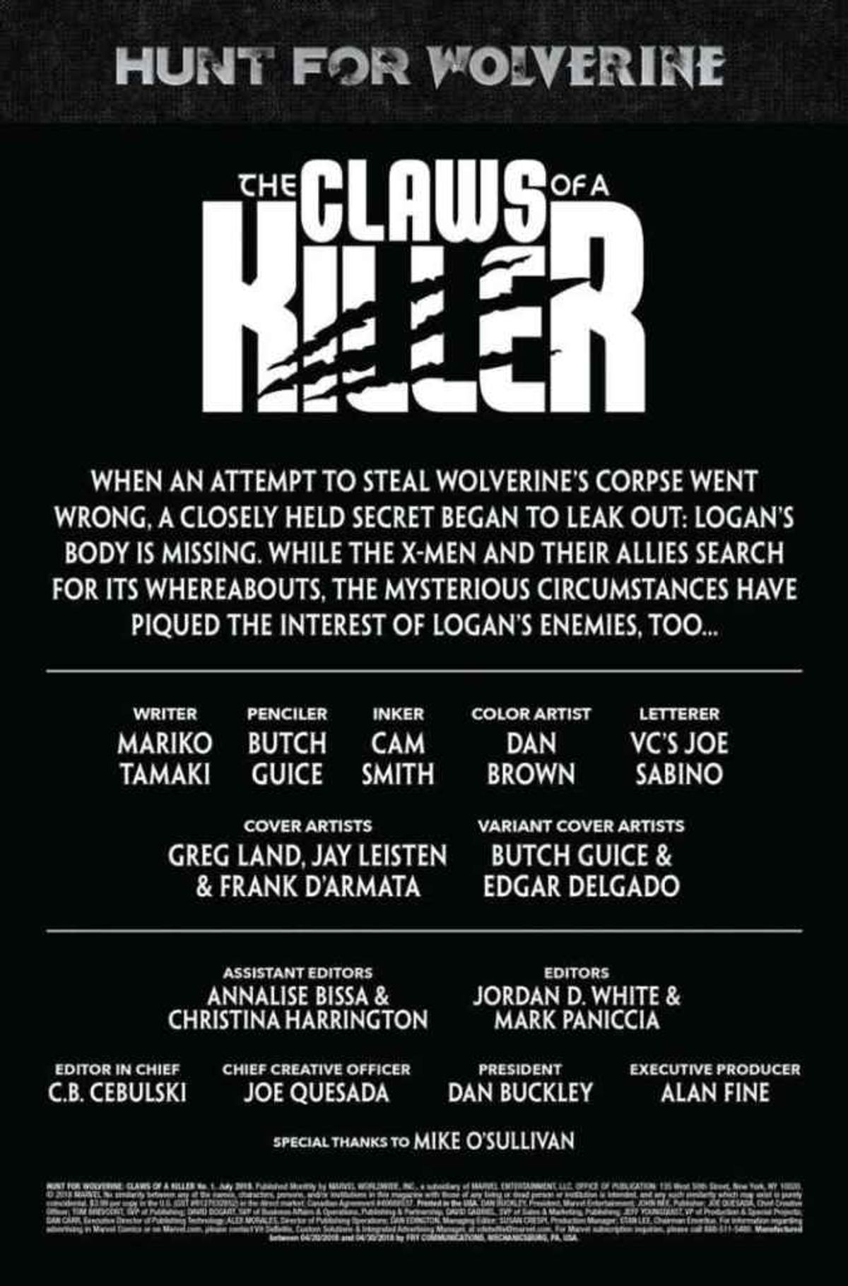 L'anteprima di Hunt for Wolverine: Claws of a Killer #1, di Mariko Tamaki, Butch Guice e Cam Smith