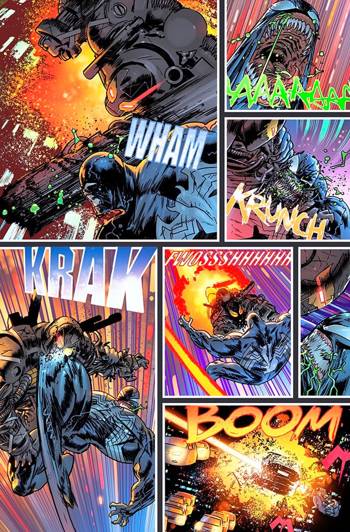 Nei mesi scorsi, sia lo sceneggiatore texano che il disegnatore della serie Ryan Stegman hanno condiviso alcune immagini in cui era possibile dare una prima occhiata al personaggio: l’avversario del V-Man si presenta con un’armatura nera simile a quella di Iron Man, sulla quale è raffigurato il simbolo di Venom in giallo. Al centro del petto, spicca un led rosso che richiama l’iconica piastra magnetica del Vendicatore d’oro.L’esordio di Virus era previsto per questo mese, sulle pagine dell’albo gratuito Free Comic Book Day 2020: Spider-Man/Venom, ma a causa dell’emergenza Coronavirus la storia è stato posticipata a data da destinarsi.In queste ore, però, l’artista Juan Gedeon ha condiviso sul proprio account di Twitter un'anteprima di Venom #27, in cui possiamo assistere a un confronto tra Eddie e il suo antagonista.