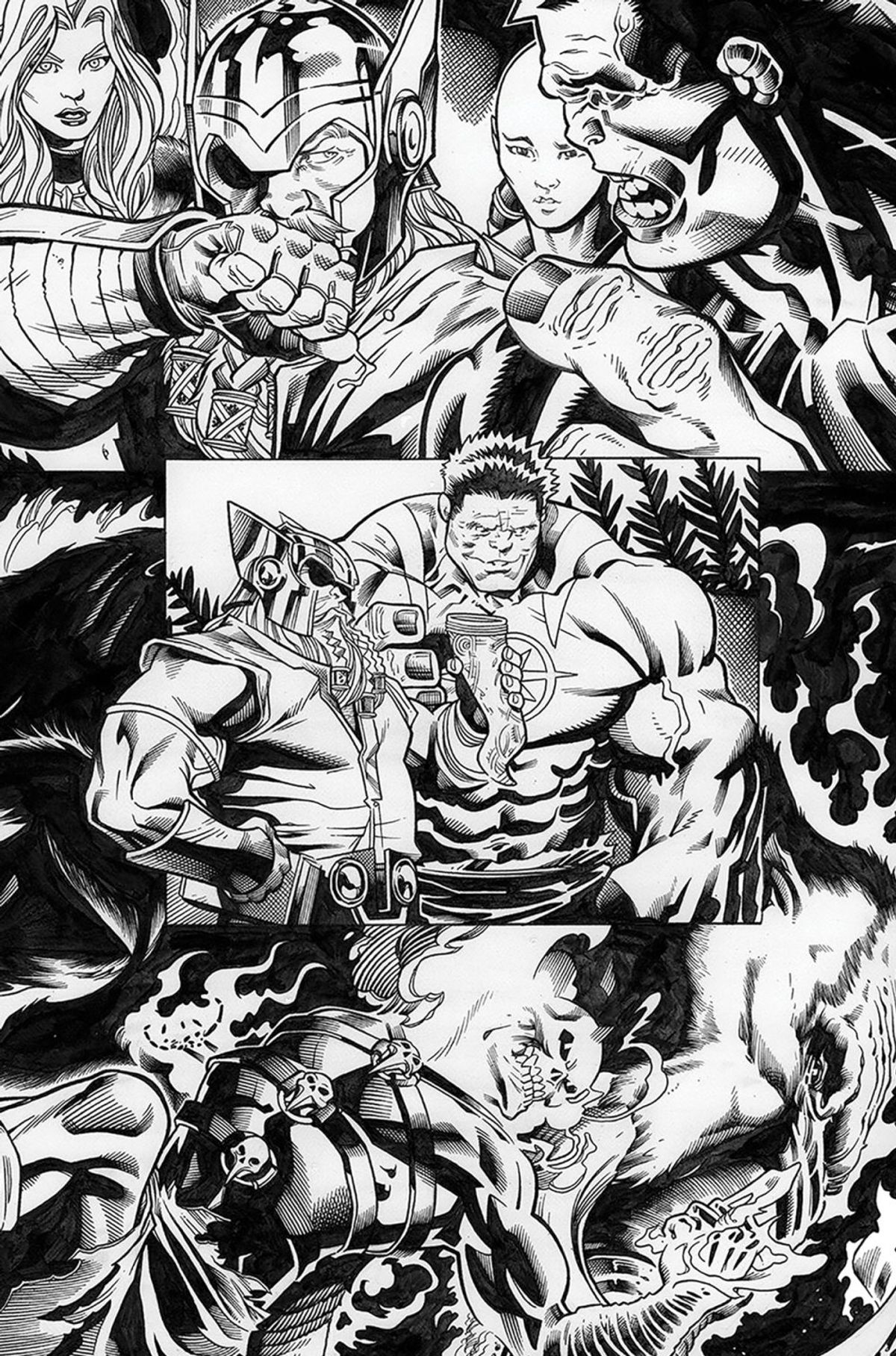 Nel corso degli eventi vedremo comparire un sacco di Celestiali. Alcuni dei classici e altri disegnati da Ed, veramente spettacolari, perché lui è abilissimo anche nel rendere il modo in cui ci si sentirebbe difronte a questi colossi: i nostri Avengers di fronte a questi dei spaziali giganteschi, alti centinaia di metri. Come può un Vendicatore affrontare faccia a faccia personaggi del genere? Ecco la sfida che la squadra ha di fronte.