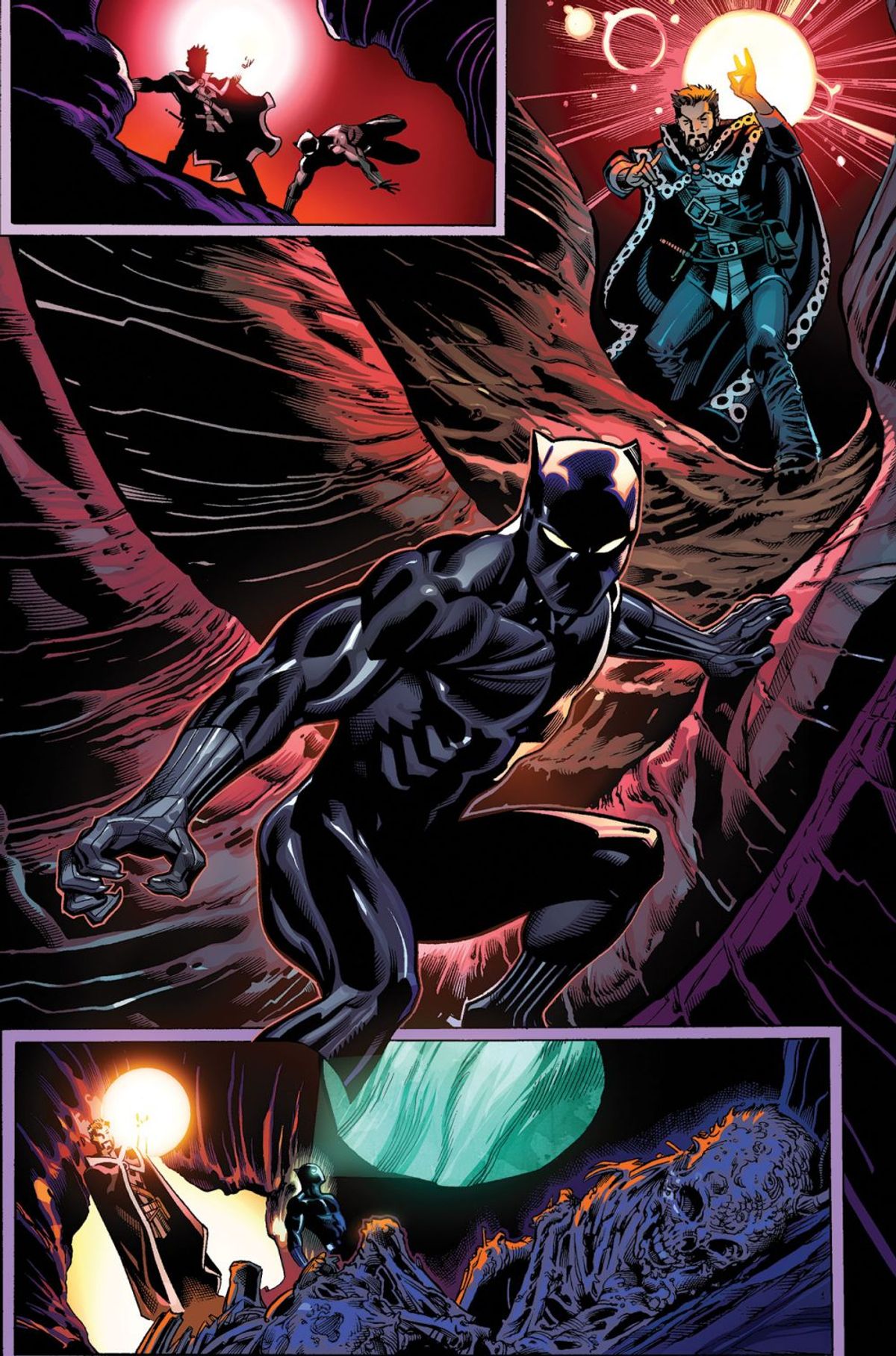 Doctor Strange è con il gruppo nella sua incarnazione iniziale. Lui e Pantera Nera staranno investigando su qualcosa che li conduce a un mistero ancor più grande. Strange ha un ruolo importante in questo primo arco, ma non è detto che rimanga con gli altri. Volutamente, non vogliamo avere un cast troppo numeroso, ma ci sarà sempre almeno un posto vacante, riempito a rotazione, nel gruppo. Qualcuno sarà al fianco del team per un paio di archi narrativi, per poi lasciare spazio a qualcun altro. Ci saranno sia facce note che altre a cui non siamo abituati.
