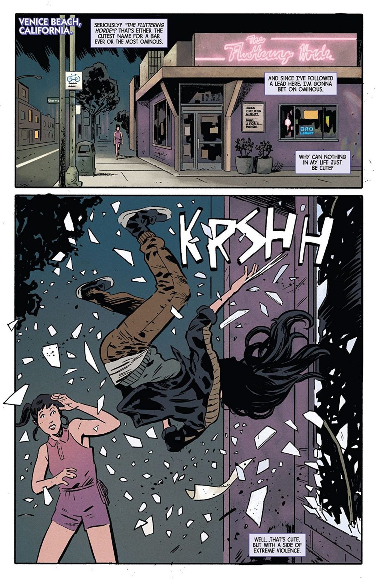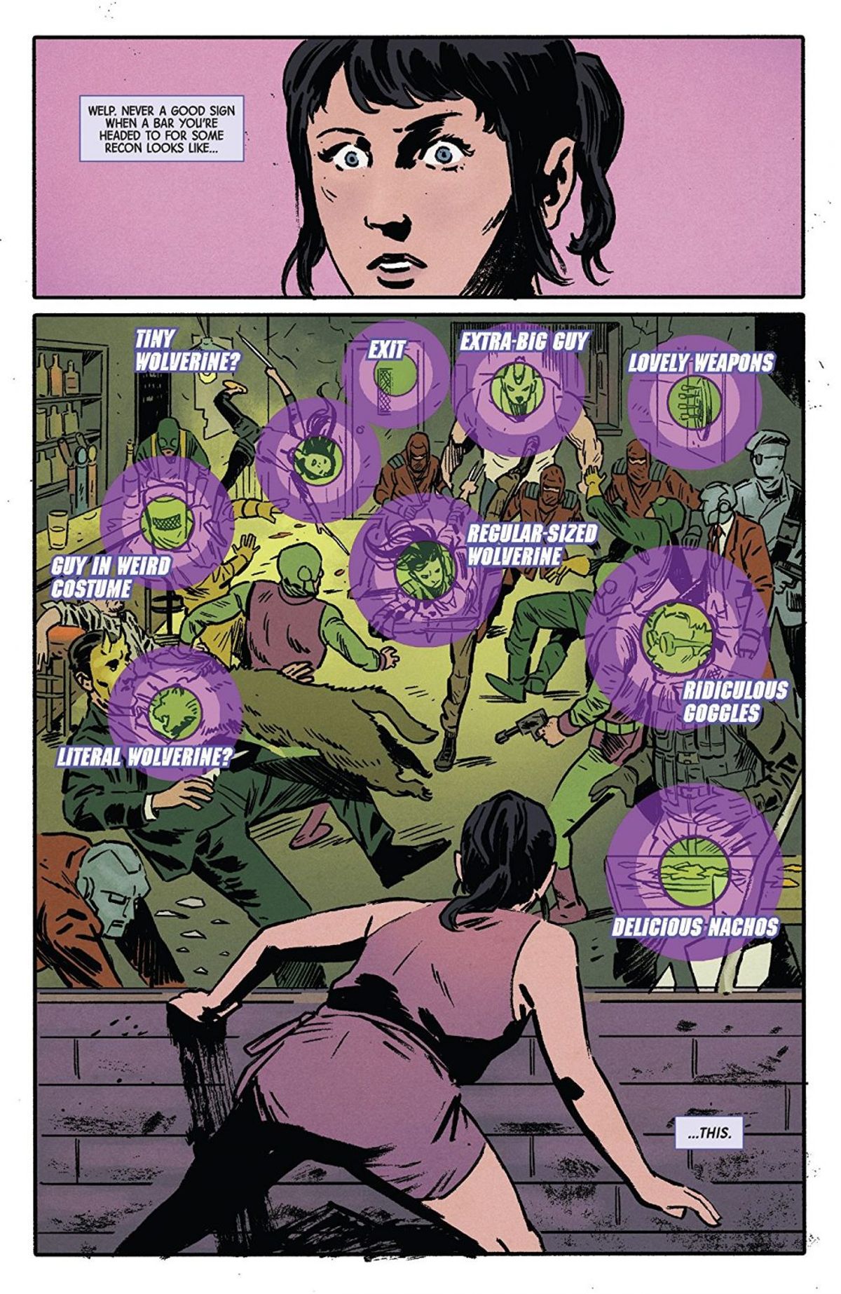 Non avrà scampo dallo scienziato pazzo e dai suo cloni! Se Kate vuole mantenere al sicuro i suoi legami, probabilmente non dovrà far parola del suo problema relativo ai cloni con Laura e sua sorella Gabby, entrambe in città. Insieme si divertono in modo invidiabile. Kate può essere eccessiva per qualcuno laconico come Laura. È stato divertente giocare con questa dinamica da "strana coppia".Clint è presente già in questo albo. Le persone ansiose di vederlo in azione possono averne un assaggio qui! Il nostro arco narrativo di Legacy mostra Clint e Kate bisognosi di aiuto, in cerca l'uno dell'altra, nello stesso momento. Si tratta di un classico team-up tra i due, con azione, scherzi, momenti felici, momenti cupi e cose che andranno male, terribilmente male. Entrambi hanno vissuto una periodo emotivamente burrascoso: Kate a causa delle nuove scoperte legate alla sua famiglia, Clint a causa degli eventi di Secret Empire e della perdita di Natasha [Romanoff, la Vedova Nera - NdR]. Insomma, nessuno dei due è al top della forma, ma non sarà questo a fermare un Occhio di Falco!
