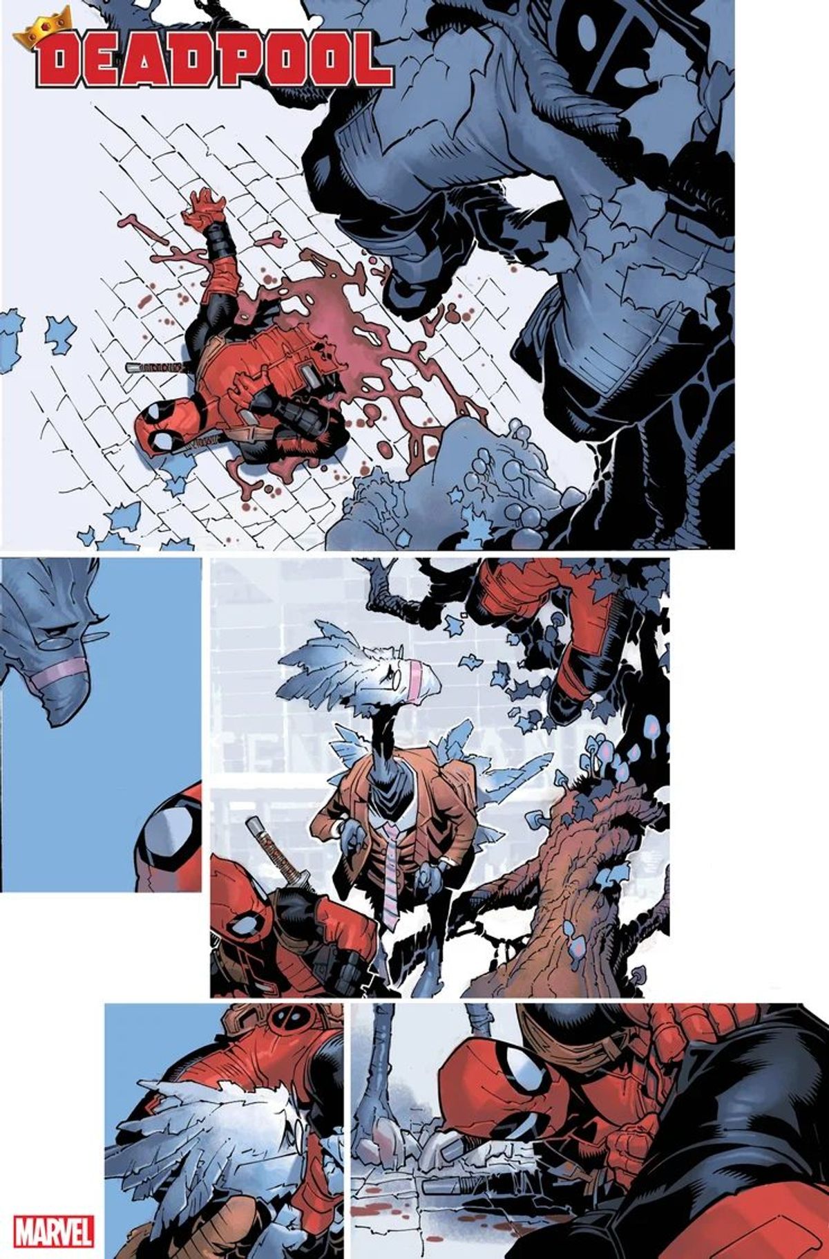 Questa serie parlerà tanto di mostri in carne e ossa quanto di mostri metaforici. Sono una grande fan di questi personaggi perché sono figure spettacolari e danno sempre modo di raccontare storie di grande prospettiva, visivamente e come percezione. Ma la cosa rilevante è che sanno prendere dei concetti metaforici e renderli letterali, il che è molto importante per un personaggio come Deadpool.Wade ha ricoperto un sacco di ruoli diversi nel corso degli anni, e credo che sia giunto a al punto di doversi guardare dentro, anche se lui finge di non averne bisogno. Essere per un po' il re di mostri gli scatenerà una serie di domande probabilmente scomode, ma anche necessarie, probabilmente. Quindi, tra scene di violenza e battute, vedremo anche manifestarsi un bel po' di oscurità esistenziale.