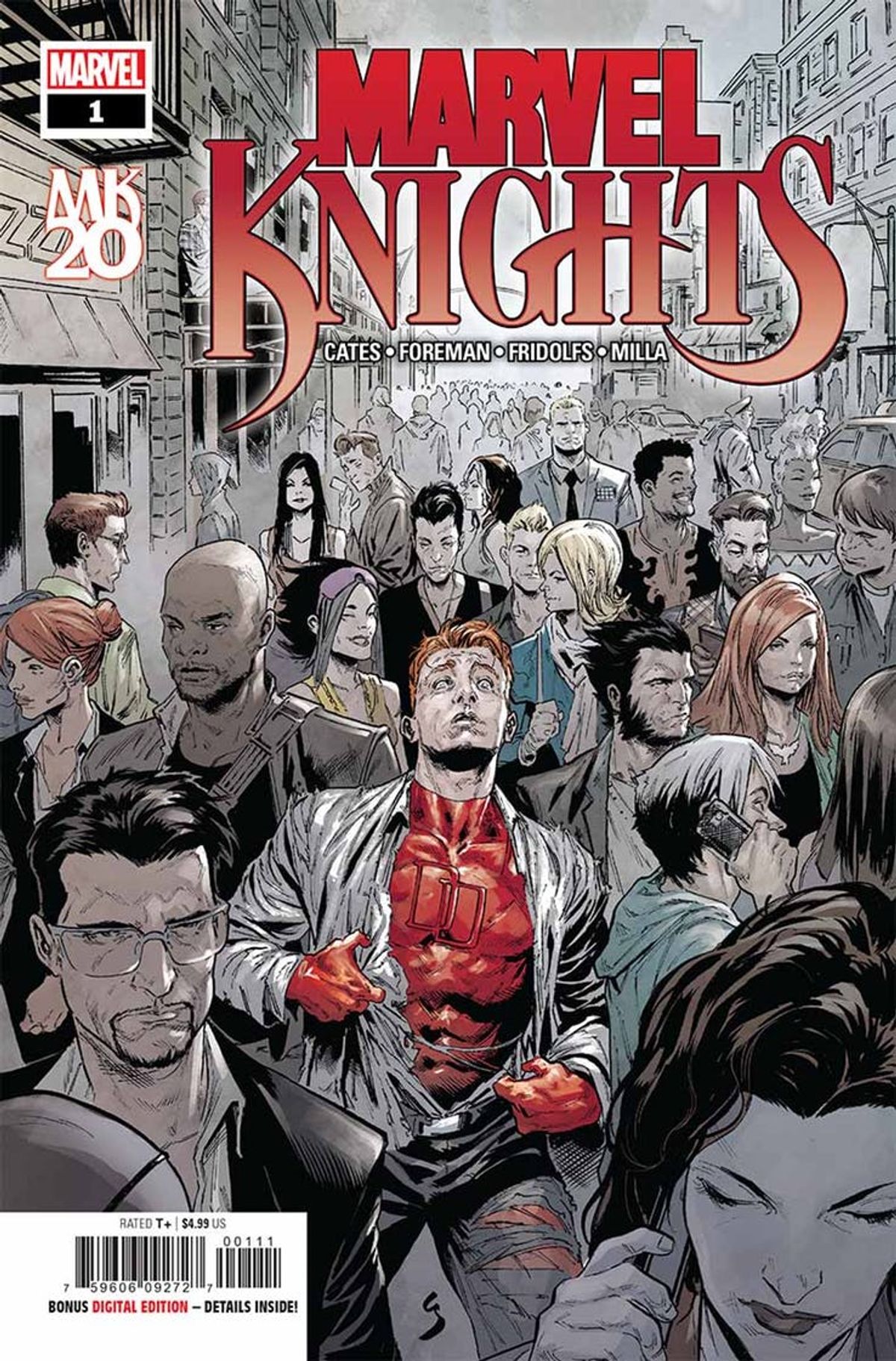Esce oggi negli Stati Uniti il primo numero di Marvel Knights 20th, miniserie in sei parti nata per festeggiare i vent’anni della storica etichetta che ha rivoluzionato la Casa delle Idee alla fine degli anni Novanta e che ha portato Joe Quesada a ricoprire il ruolo di Editor-In-Chief.L'opera sarà scritta da Donny Cates, Matthew Rosenberg, Tini Howard e Vita Ayala per i disegni di Travel Foreman e Niko Henrichon, con copertine firmate da Geoff Shaw e variant cover di Jae Lee.