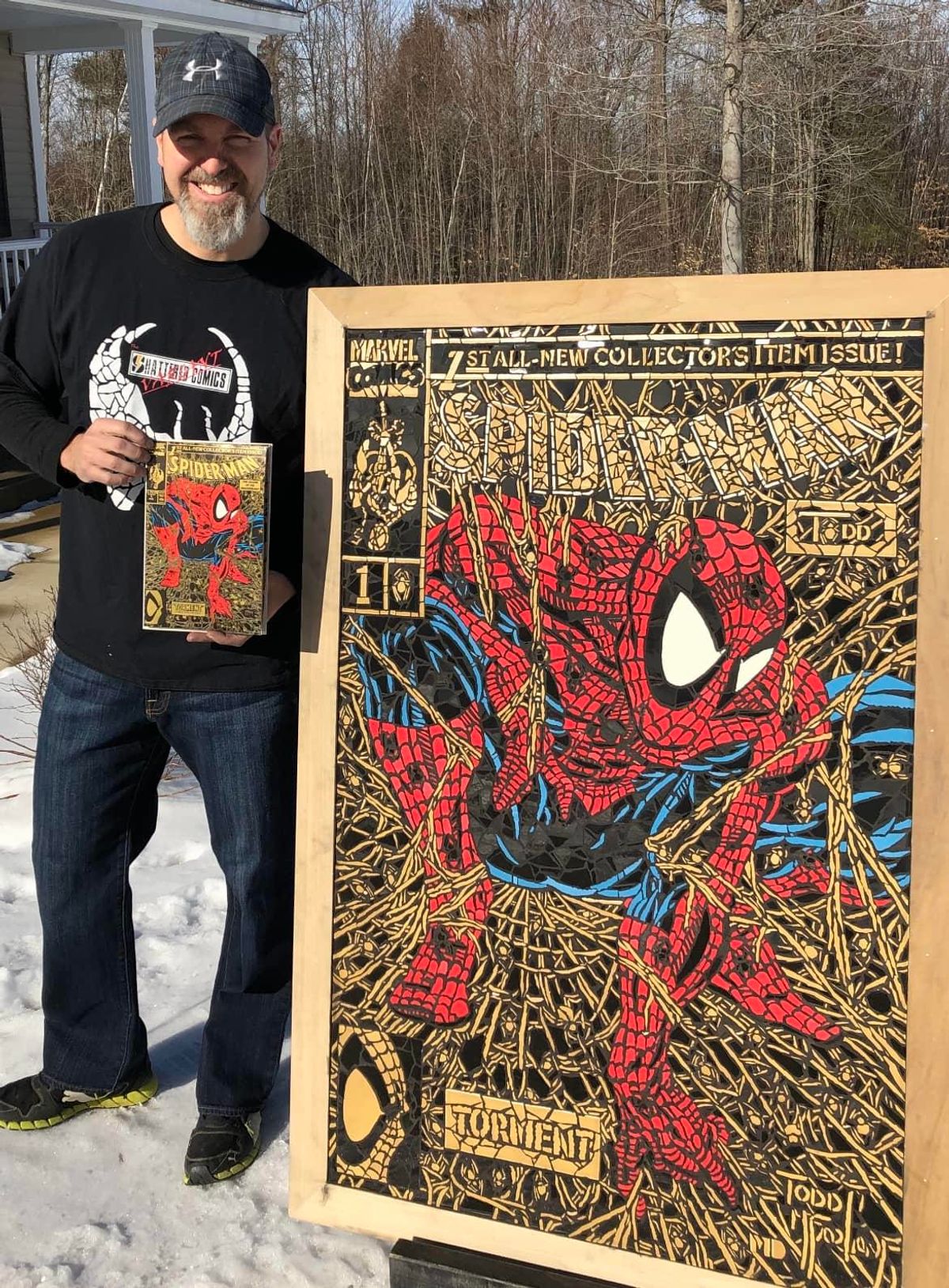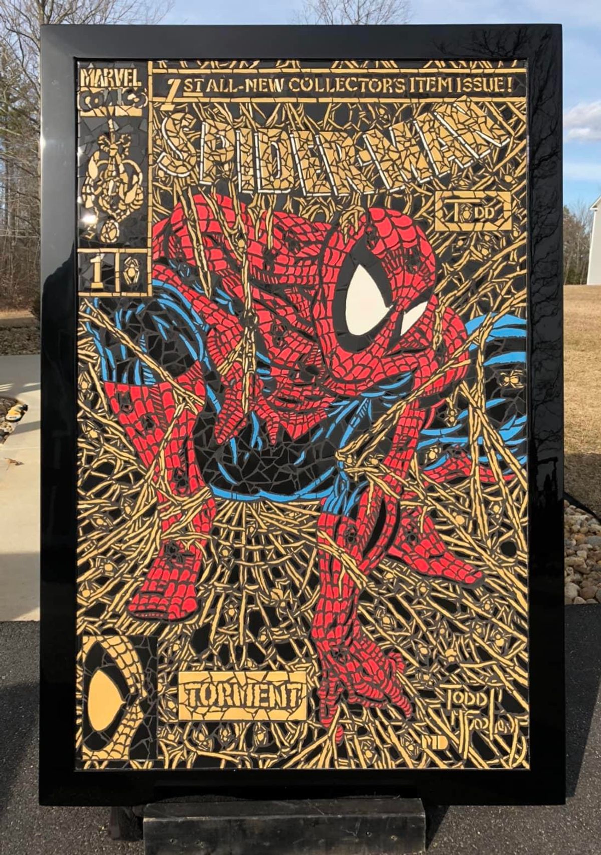 In occasione delle celebrazioni degli ottant'anni della Marvel, Matthew DiMasi ha composto un mosaico che riprende l’iconica copertina del primissimo albo della serie Marvel Comics, pubblicato nell’agosto del 1939. Il radiologo di Concord - medico di giorno e artista nelle restanti ore, come viene presentato sul sito ufficiale della Casa delle Idee - ha sviluppato una tecnica personale con la quale sfrutta parti di mattonelle e altro materiale di scarto per omaggiare il mondo del Fumetto riproponendo iconiche illustrazioni.La sua ultima composizione è dedicata alla storica cover di Spider-Man #1, realizzata originariamente da Todd McFarlane. Proprio quest'agosto, infatti, ricorre il trentesimo anniversario della pubblicazione dell'albo e Di Masi ha pensato bene riproporre una delle cover più amate e omaggiate del Tessiragnatele con la sua peculiare tecnica e affascinante tecnica.