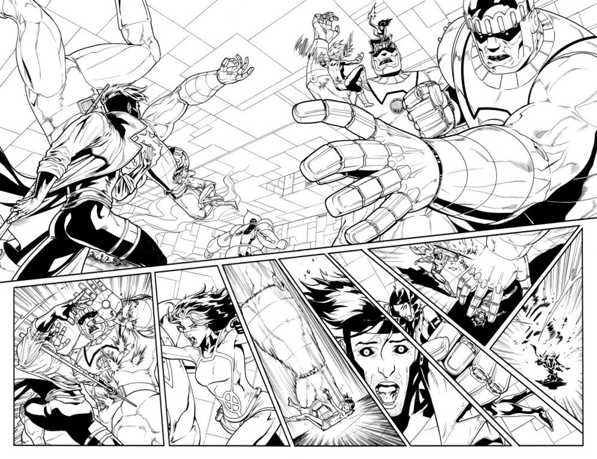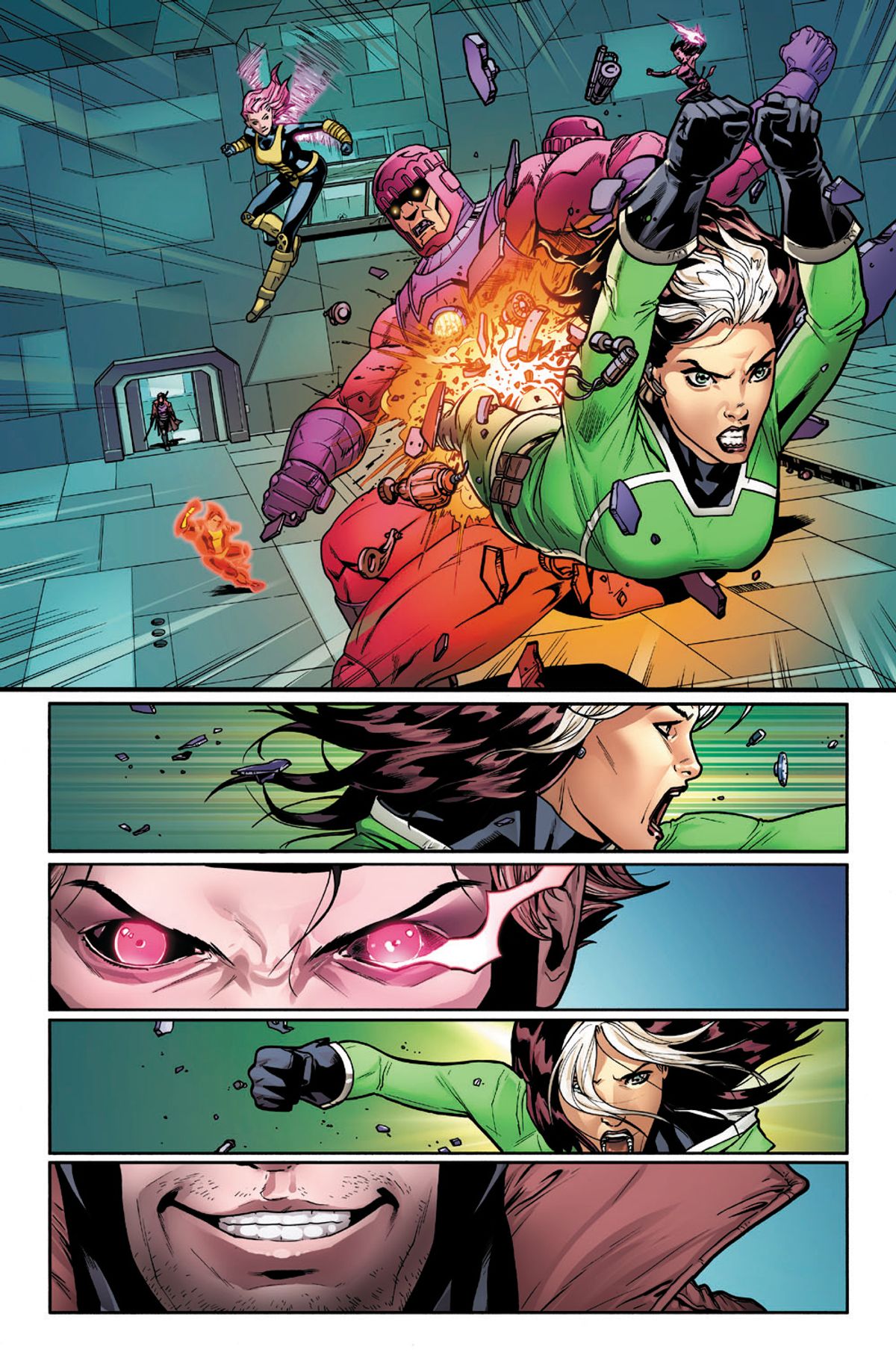 Ho creato un po' di possibili costumi, soprattutto per Gambit, ma alla fine abbiamo deciso con una versione della sua tuta piuttosto simile a quella classica. Diciamo che non lo vedremo portare un solo costume, comunque. Kelly ha anche una visione molto precisa di come debbano apparire quando non sono in uniforme e mi ha dato un sacco di specifiche modaiole su cui lavorare.Io e Kelly lavoriamo a stretto contatto. Le sue sceneggiature sono potenti e meticolose. Ha un'idea precisissima di come Rogue e Gambit debbano agire, e io sento di avere da lei tutte le informazioni necessarie, in modo da poter disegnare tutto quel che devo per farli apparire vitali. In più, è una persona molto gentile e sempre disposta a darmi una mano. Lavorare con lei è un vero piacere.