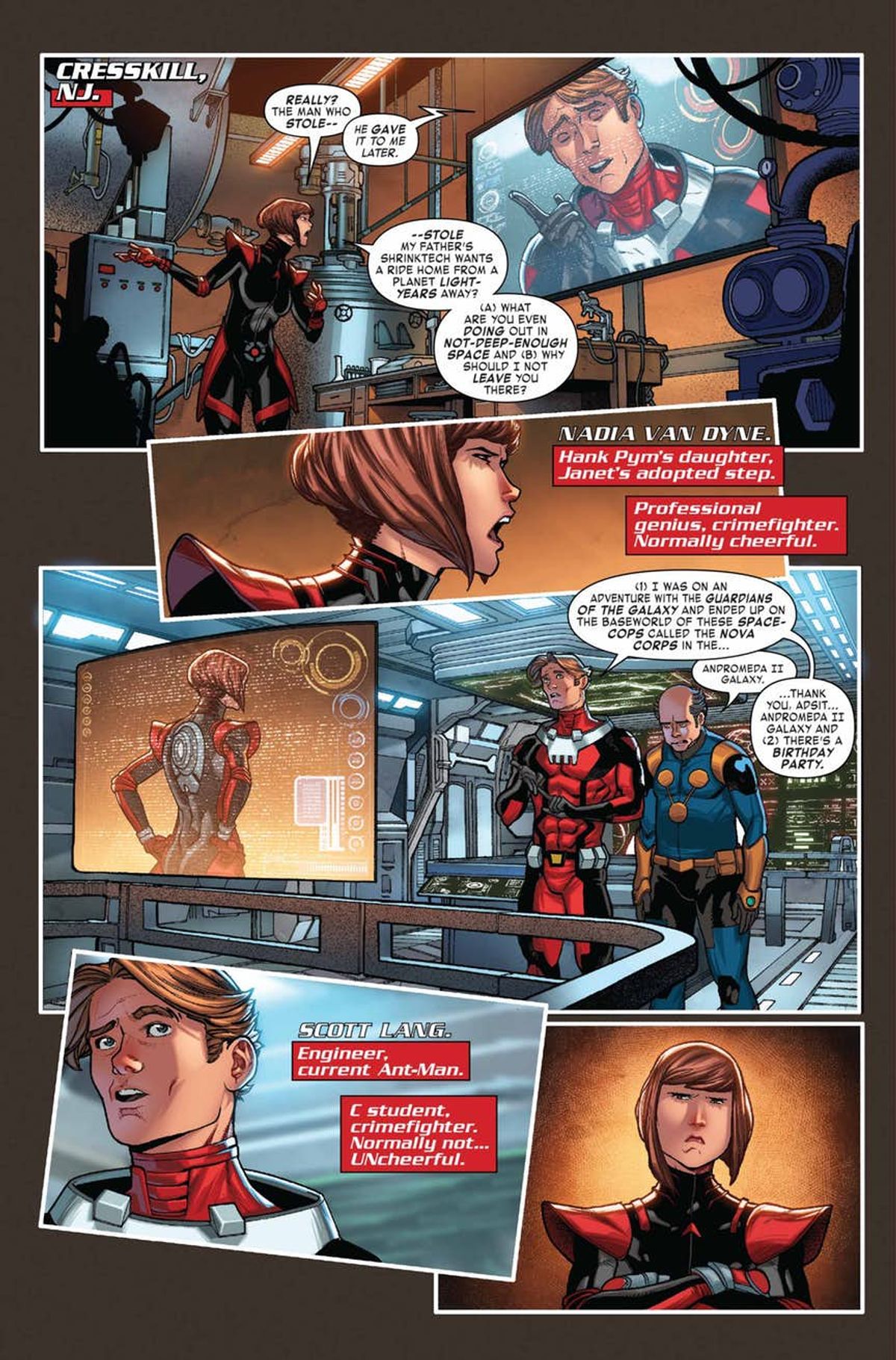 Di seguito trovate la sinossi e un'anteprima dell'albo:Una nuova serie di Mark Waid & Javier Garron! Wasp stava solo cercando di aiutare Ant-Man a tornare a casa, sulla Terra, per vedere sua figlia... ma si è messo in mezzo un piccolo problema. Davvero piccolo. Subatomico, in realtà, come Scott Lang sperduto nei vasti spazi tra gli atomi! Ora, Nadia è la sua unica speranza di salvarsi... se solo l'ascoltasse abbastanza a lungo da salvare entrambi! Dal maestro narratore Mark Waid (Captain America, Champions) e il disegnatore Young Gun Marvel Javier Garrón (Secret Warriors, Star-Lord) arriva la storia di un grande viaggio che diventa sempre più piccolo!