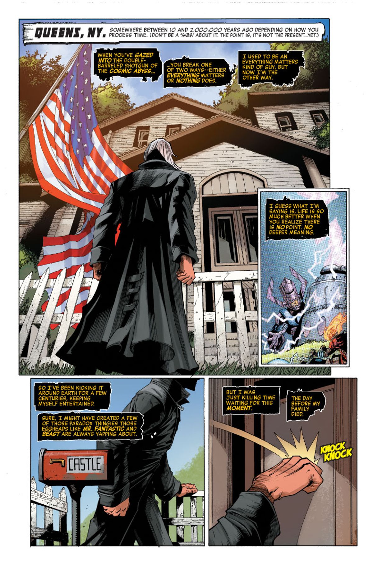 Il Ghost Rider Cosmico è bloccato nel passato, quindi potrebbe anche divertirsi con le origini dell'Universo Marvel, giusto?! Dopo essere tornato indietro nel tempo e aver cercato di uccidere Baby Thanos, Frank Castle giura che non tenterà più di alterare la Storia. Ma quando arriverà nel passato della Terra, alla nascita dei Fantastici Quattro, come potrà resistere a tuffarsi nel divertimento?!