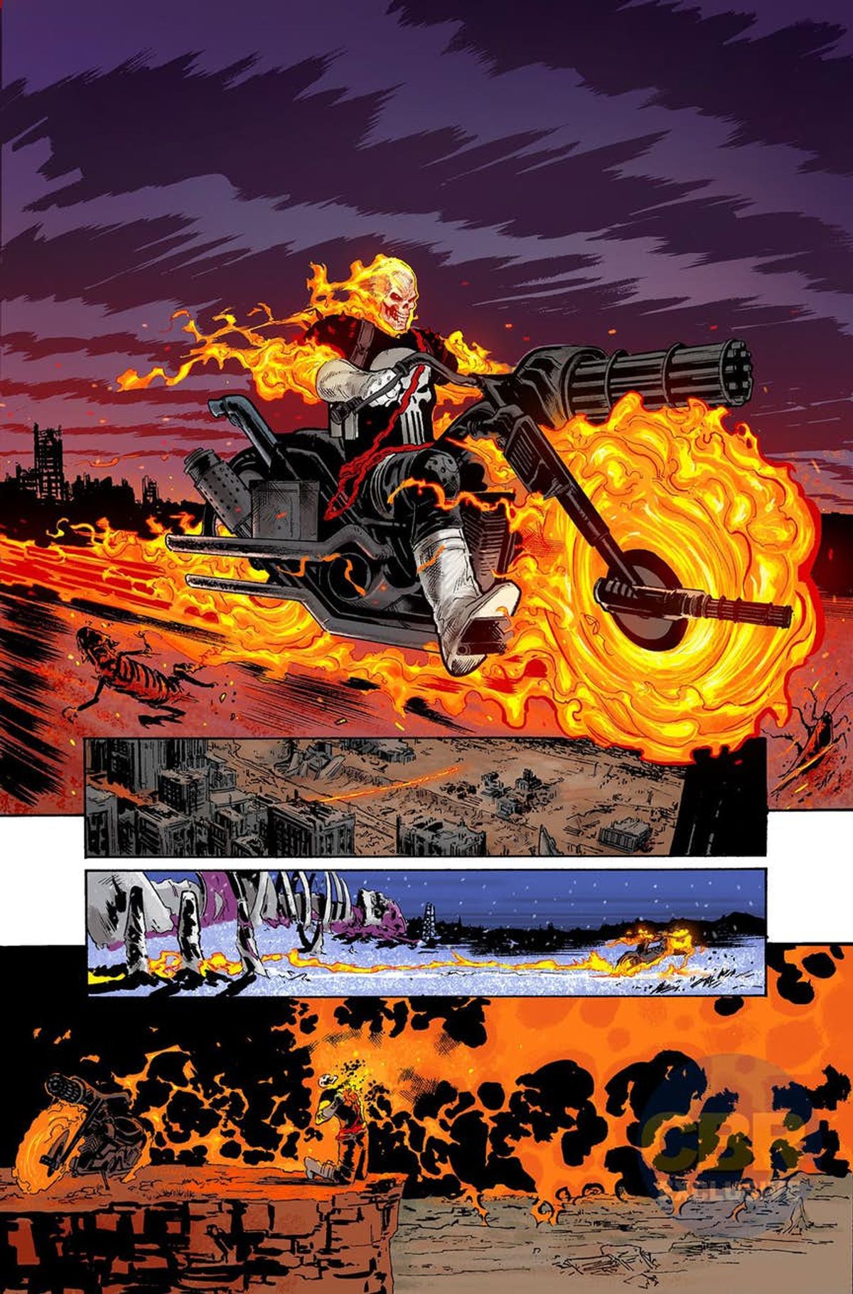 Quando gli è stato offerto Thanos, è rispuntata l'idea. Dopo aver valutato i personaggi che compongono l'Ordine Nero come possibili spalle del Folle Titano del futuro, senza che nessuno si qualificasse, ecco Ghost Rider/Frank Castle occupare la posizione, facendo divenire la propria vicenda una parte importantissima della storia.Il Ghost Rider cosmico è un'idea che mi è venuta almeno sette anni fa. Mi sembrava una follia il fatto che nessuno avesse ancora trasformato Frank Castle nello Spirito della Vendetta, semplicemente perché nessuno ama questo concetto più di Punisher. Sembra fatto apposta per diventare Ghost Rider. Nella sua carriera è stato persino una cosa simile al mostro di Frankenstein.