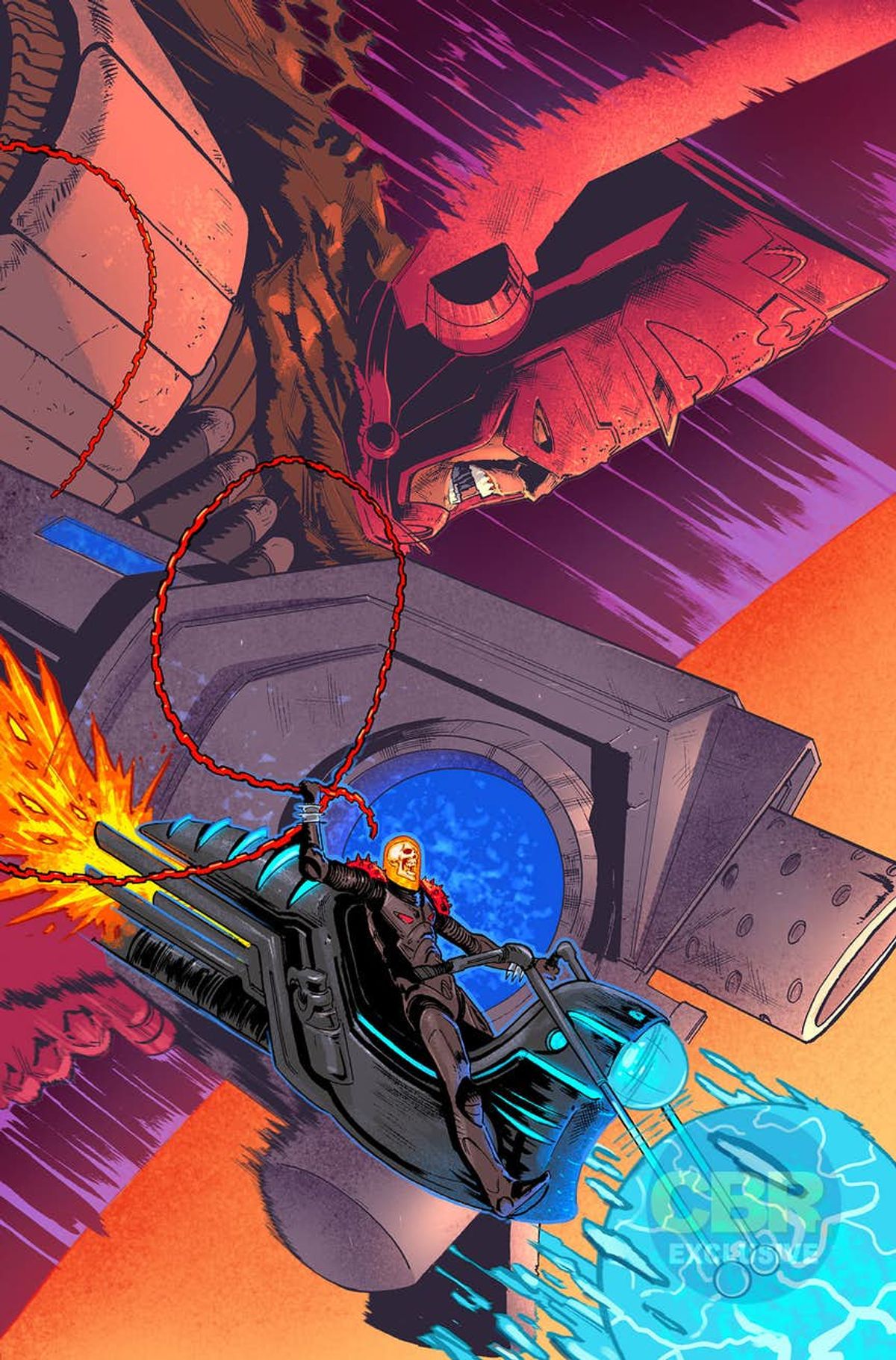 Quando ho iniziato a lavorare alla Marvel, dato che non avevo mai scritto niente per loro, io e l'editor Mark Paniccia abbiamo fatto un po' conoscenza via e-mail, e gli ho buttato lì questa idea. Si parla del 2012 o 2013. Mi ricordo che Mark mi disse che era talmente buona che il fatto che non fosse ancora capitato lo preoccupava un po'. E io ero d'accordo. Immaginavo che che in realtà fosse già stato fatto o che, ad ogni modo, sarebbe successo prima che io avessi l'occasione di scrivere per la Marvel. Invece no. Ho potuto realizzare io l'idea.Sapevo fin dall'inizio che la storia avrebbe avuto bisogno di un po' di respiro, dato che ci sono ben due Thanos contemporaneamente, e quei tizi sanno essere pesanti. Il fatto che Frank Castle abbia spesso il ruolo di spalla comica, vi dice quanto oscura possa essere la serie. Prima che essa prendesse forma sulla carta, l'idea del Ghost Rider cosmico è stata a lungo in gestazione nella mia testa. Ogni scrittore rimane incollato a un'intuizione e inizia a svilupparla nel proprio cervello anche se non sa nemmeno se mai la realizzerà. All'epoca, avrei voluto proporre una storia intitolata "Ghost Rider: Araldo di Galactus". L'acronimo sarebbe stato "GRHoG". Fichissimo.