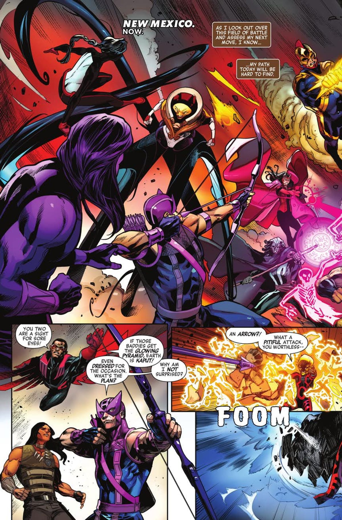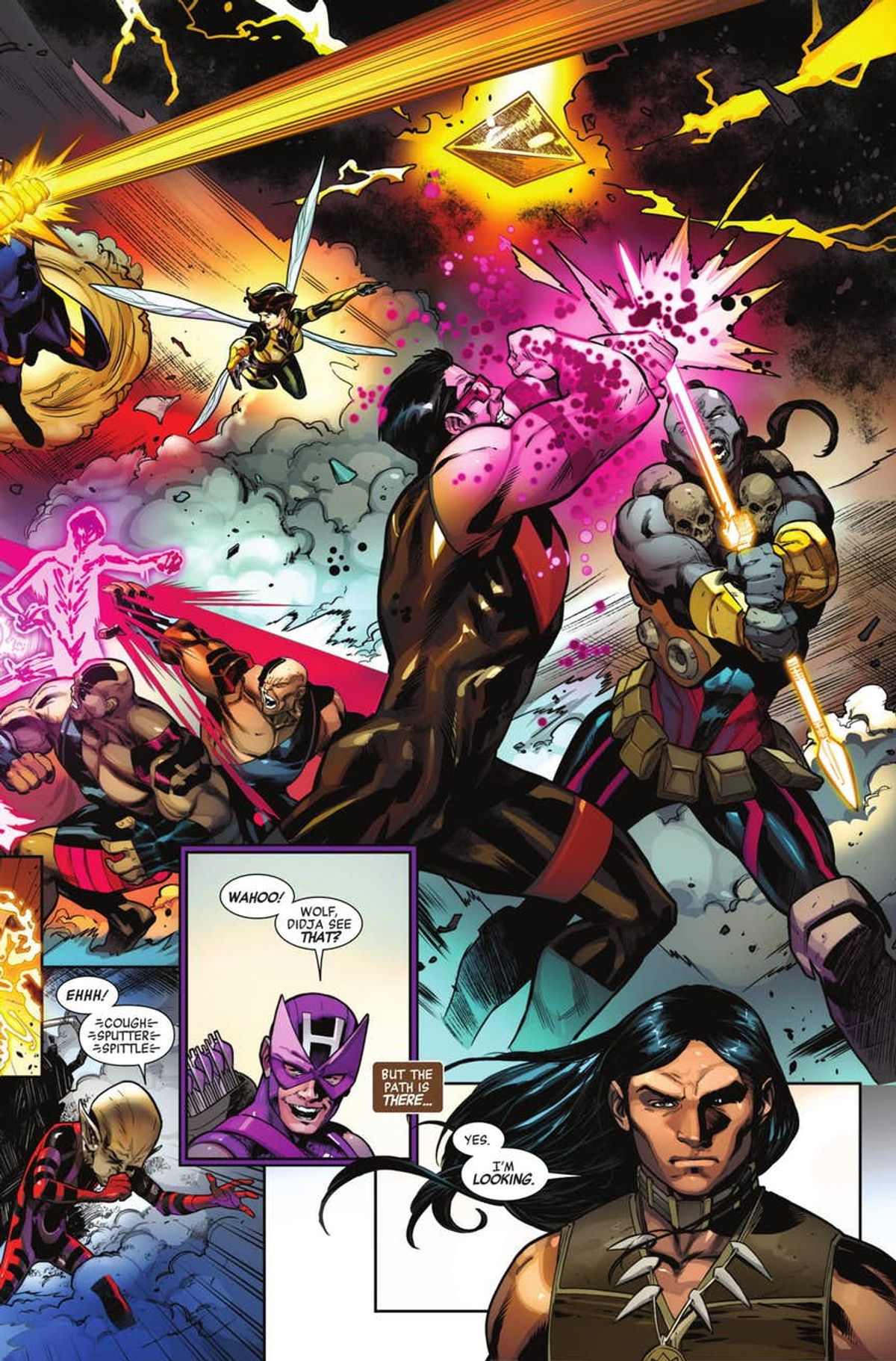 Ewing - Occhio di Falco e Red Wolf sono destinati presto a vivere dei momenti importanti, che diranno molto della dinamica che si è instaurata fra i due personaggi. Clint ha una lunga storia alle spalle con un'altro Avenger di cui dovremo parlare molto, prima che la storia finisca...