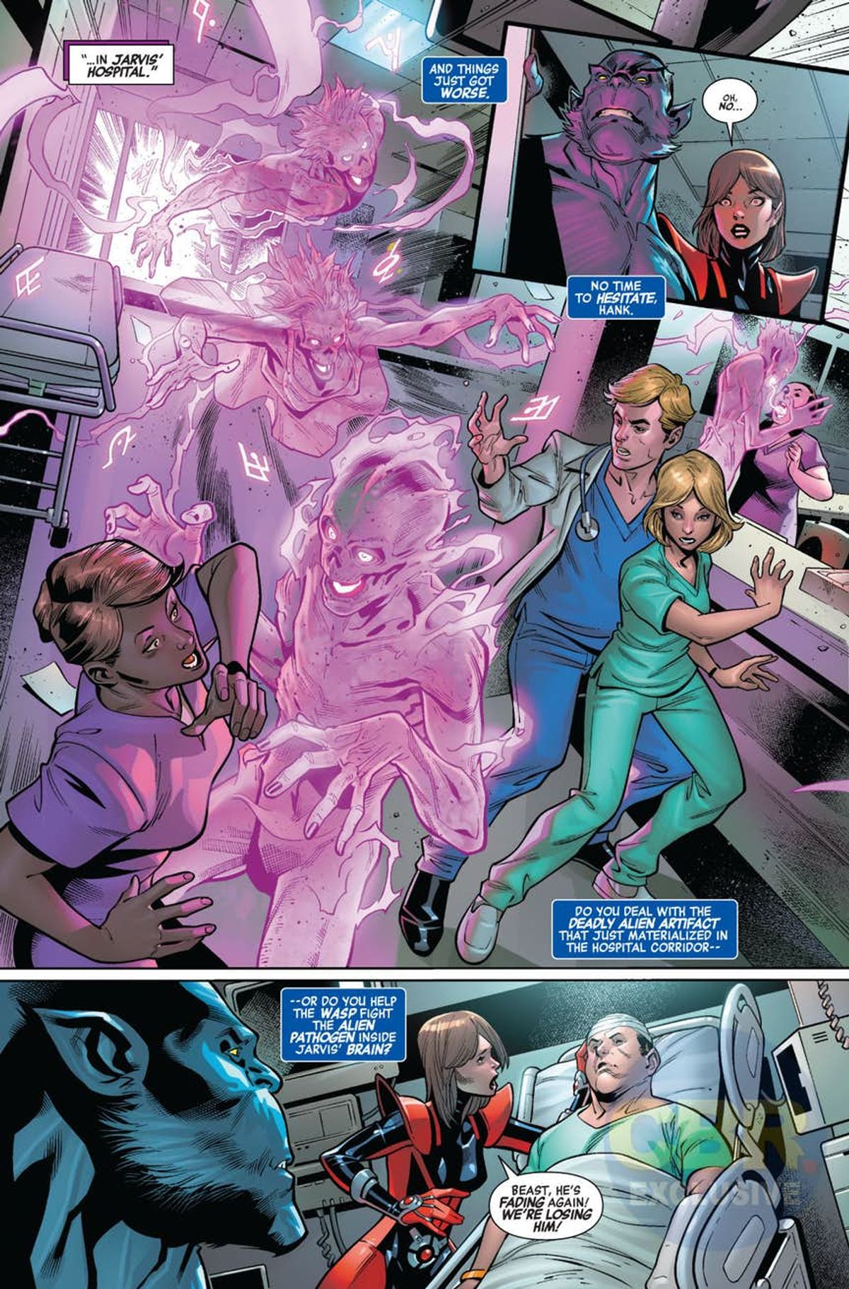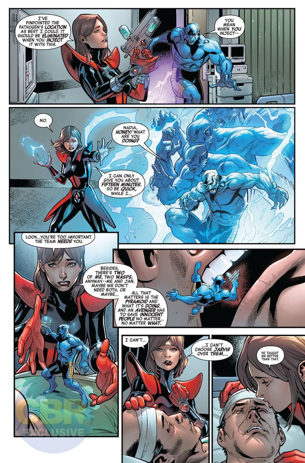 Ewing - Avevamo già un fondatore degli Avengers originali in gioco, ma con la liberazione di Janet Van Dyne, la Wasp originale, ora ne abbiamo un altro. Credo che, quando racconti una storia colossale sul gruppo come questa, sia bene avere fin da subito un senso di continuità e Janet è una dei membri originali che era presente durante una delle mie epoche preferite dei Vendicatori: quella di Roger Stern e John Buscema. Averla per noi è una gran cosa.