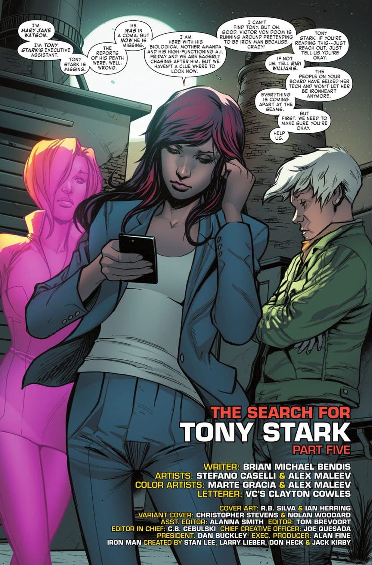 L'albo conterrà la quinta parte di The Search For Tony Stark, lo storyarc conclusivo della run scritta da Bendis, che giungerà al suo climax nel celebrativo numero #600 di maggio, mese che innescherà il nuovo, grande rilancio della Casa delle Idee.
