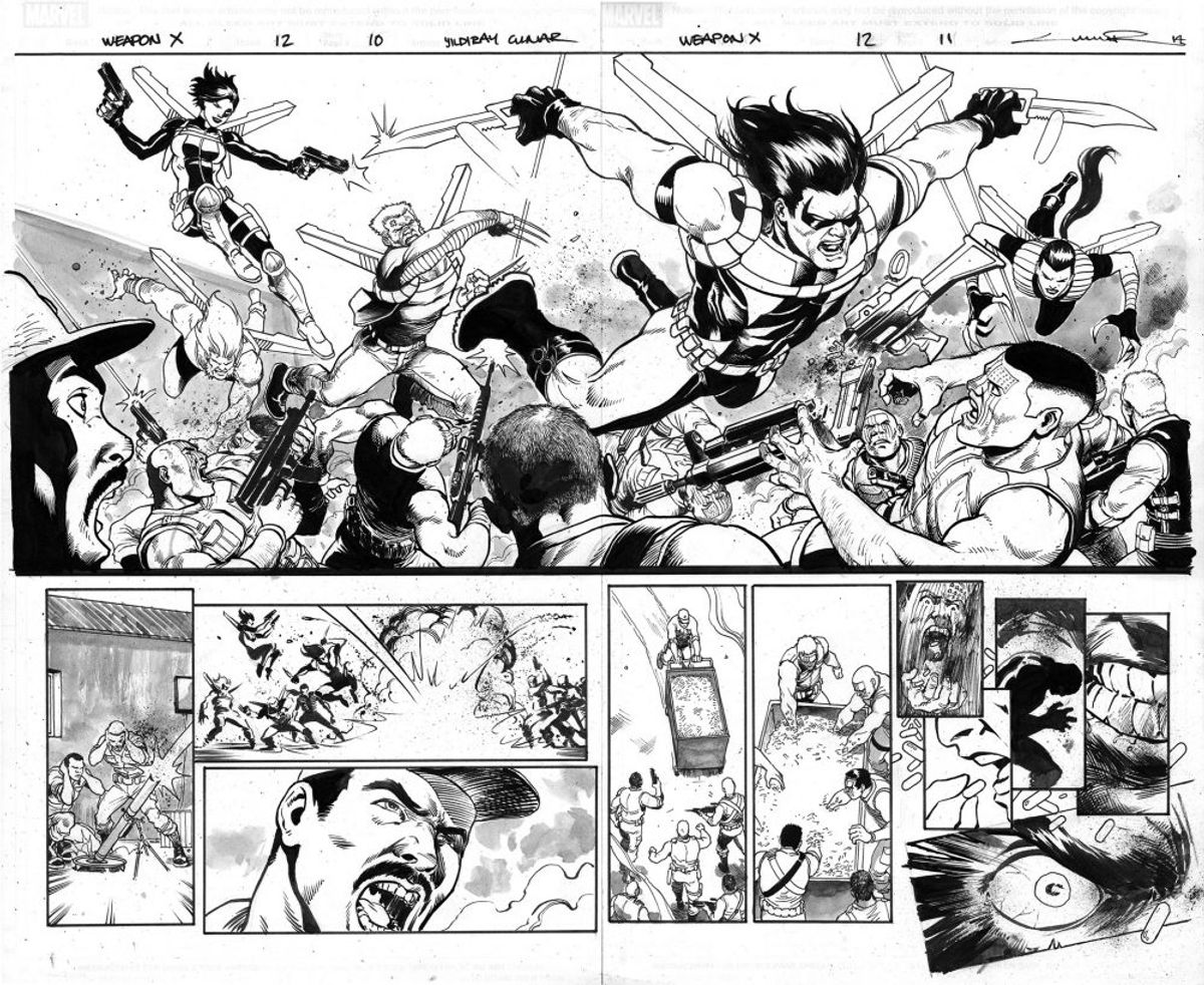 Weapon X è un gruppo di mutanti molto divertente che presenta i personaggi più bestiali dell'Universo Marvel. Sono tutti individualisti e molto diversi tra loro, cosa che facilita il mio lavoro.È stato semplice ritrarre i loro nemici, perché appartengono tutti alla stessa unità: sono militari che hanno scelto di prendere la Pillola Rossa e hanno delle bandiere disegnate sui volti! Tutti soldati con lo sguardo da pazzo!