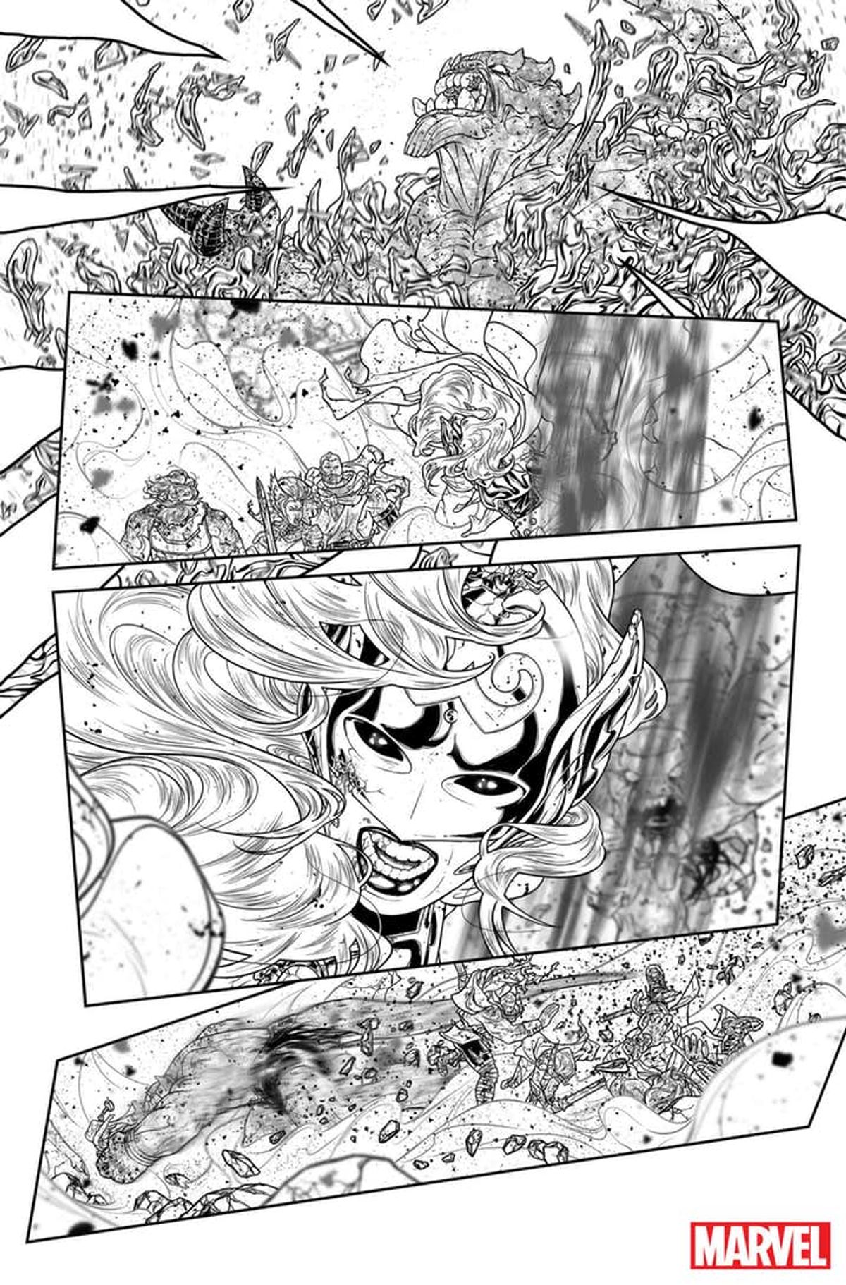 In attesa di leggere Mighty Thor #705, ecco a voi le prime tavole firmate dall'artista Russell Dauterman:Dopo tanto tempo, finalmente l'epica resa dei conti esplode nei cieli. Thor si batte contro l'inarrestabile Mangog, con il destino di tutta Asgardia in bilico. Thor pagherà il prezzo definitivo per salvare gli dei? La storia eroica e tragica di Jane Foster raggiunge infine il suo zenit straziante. Conoscete ciò che sta arrivando. La morte della Potente Thor è infine giunta.