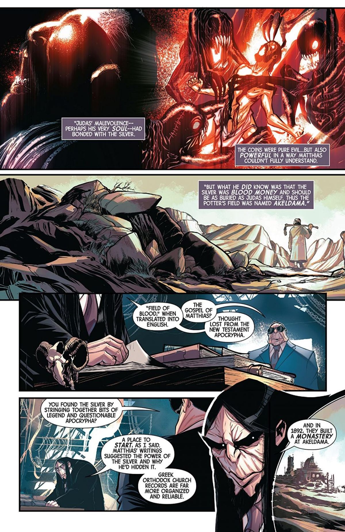 Avevo una nonna estremamente religiosa che mi ha parlato di ogni singolo racconto biblico. Ce ne sono tantissimi sfruttabili per altre storie legate a Paradiso e Inferno. Sembra proprio che Hellstorm e compagni saranno alcuni dei personaggi che le vivranno.La Bibbia è piena di "accordi". Intendo dire: ai primi due individui sulla Terra è stato detto: "Mangiate da qualsiasi albero ad esclusione di questo e starete bene". Questi accordi - e le conseguenze dovute al romperli - sono ciclici.