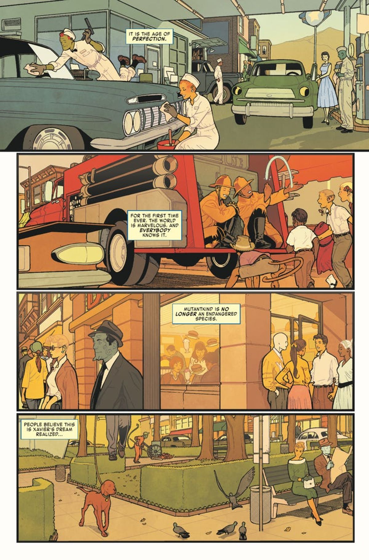Gli abbiamo gettato addosso moltissimo nelle sceneggiature, ma lui ha portato alla vita personaggi e mondo facendolo sembrare facile. So che potrei sembrare un po' esagerato, ma quando abbiamo visto le prime pagine realizzate per l'albo abbiamo capito che nessun altro avrebbe potuto disegnare Age of X-Man: Alpha.Thompson - Questo albo doveva riuscire a dire moltissime cose e ogni pagina accoglie una quantità folle di dettagli. Ramon, con la sua sensibilità di narratore esperto, ha preso le nostre sceneggiature e le ha portate a un livello assolutamente ammirevole. Vedere Ramon che introduce questo mondo ai lettori assieme a noi è davvero un sogno.