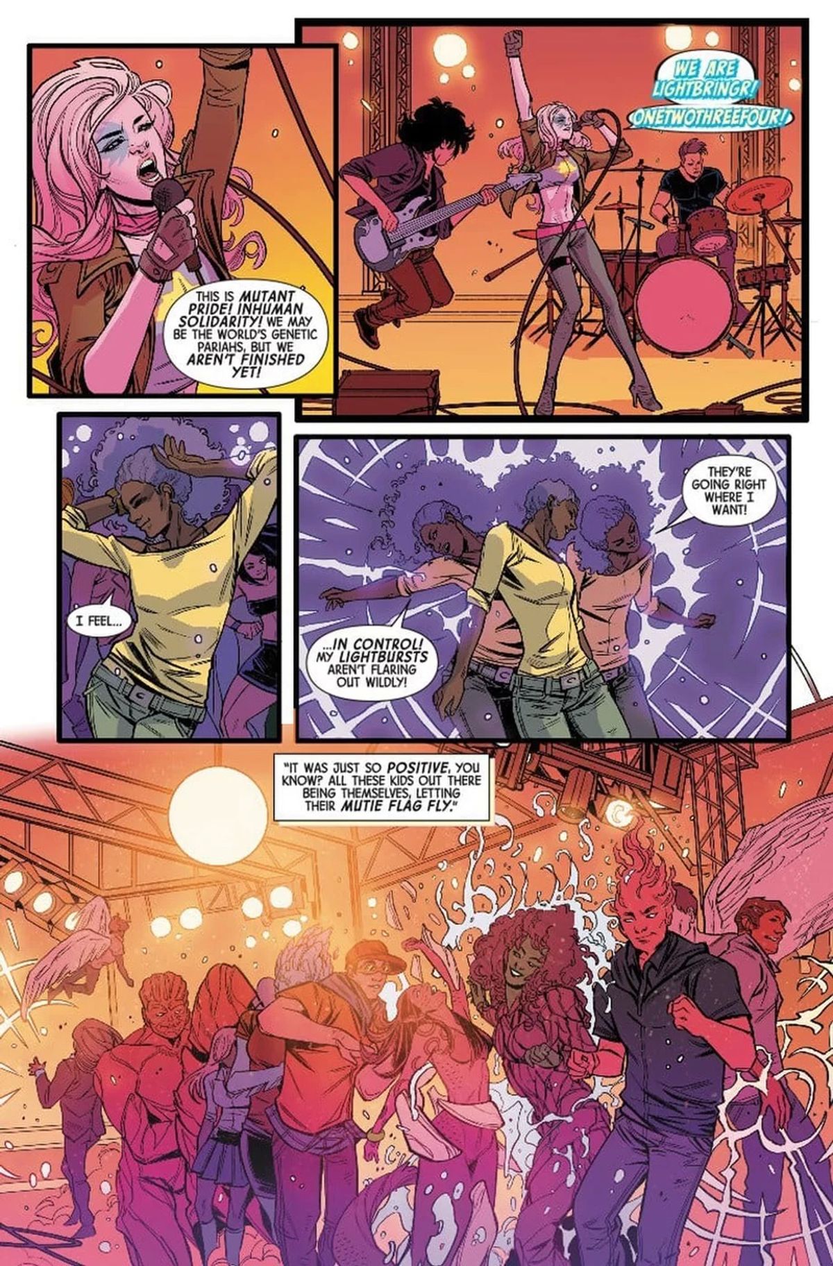 Alison non è come le Kim. Non ha quell'incoscienza che hanno le Fighting Kim che sta dietro all'idea stessa e che lo rende un fumetto punk. Se c'è un paragone possibile, sta nel fatto che entrambi sono fumetti che mettono in scena giovani donne alla ricerca di un modo per stare al mondo, subito dopo fallimenti cocenti.Non si parla tanto del passato di Dazzler, quanto più del suo futuro: si sta ancora riprendendo da quanto le è successo. Alison ne ha passate tante. Principessina del revival disco-pop, diventata super eroina rinnegata e rivoluzionaria extra-dimensionale, per poi diventare un'ufficiale paramilitare e tornare a essere una super eroina. Che ha visto una versione alternativa di sé morire.
