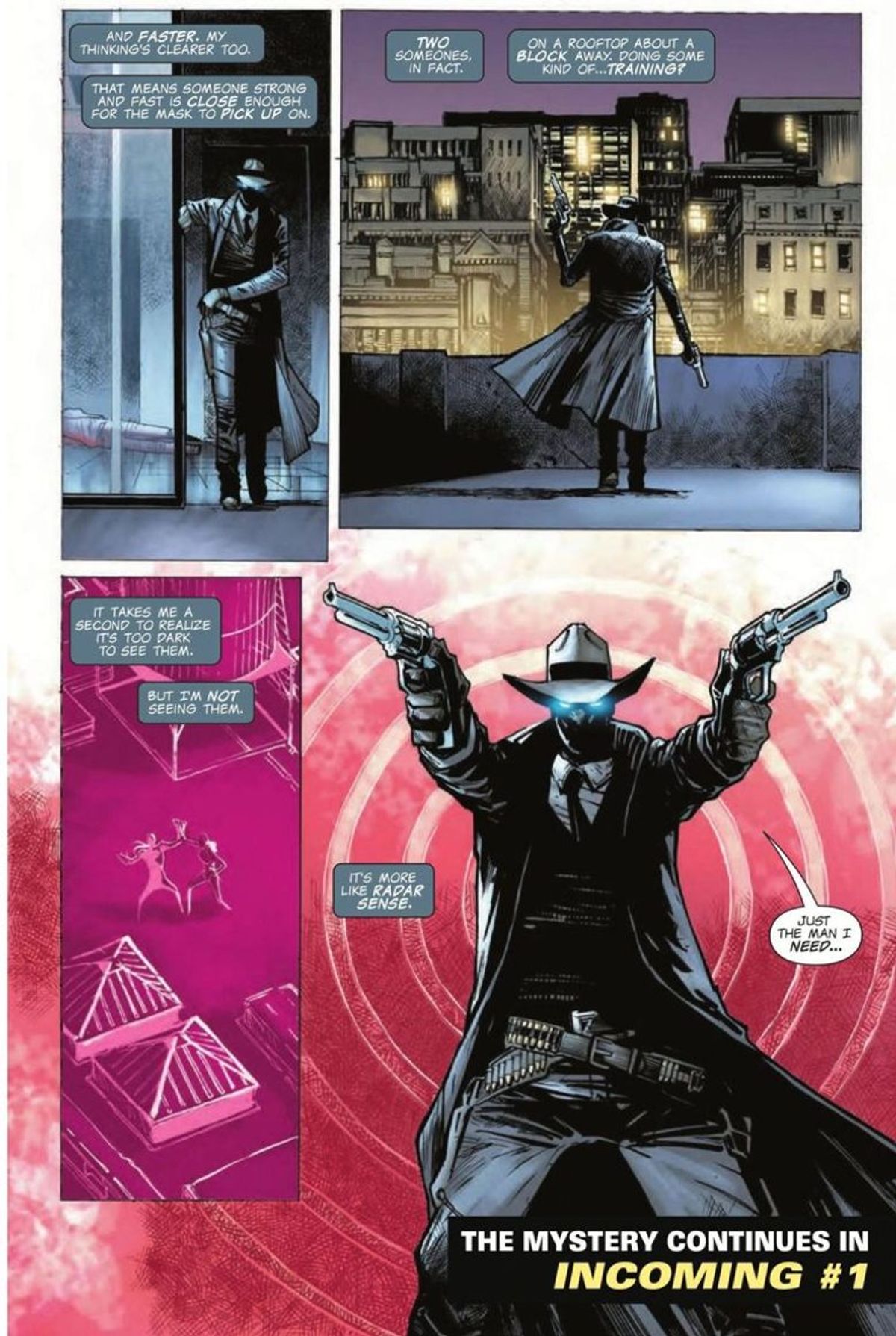 Il team creativo dell'albo annovera i principali autori della Casa delle Idee: Al Ewing (Immortal Hulk), Dan Slott (Fantastic Four), Chip Zdarsky (Daredevil), Kelly Thompson (Captain Marvel), Greg Pak (Agents of Atlas), Eve L. Ewing (Riri Williams: Ironheart), Matt Rosenberg (Uncanny X-Men), Ed Brisson (Old Man Logan), Saladin Ahmed (Miles Morales: Spider-Man), Tini Howard (Thanos), Jonathan Hickman (House of X), Donny Cates (Venom) e Jason Aaron (Thor).Sono state da poco diffuse le prime tavole dell’albo disegnate da Humberto Ramos, che vedono al centro della scena Masked Raider, la cui prima iterazione è apparsa sulle pagine di Marvel Comics #1 (1939); recentemente, il personaggio è tornato in auge sul numero #1000, grazie all'interesse di Ewing.Entrato in possesso della Maschera dell'Infinito sulle pagine dello speciale celebrativo, l'eroe mascherato sembra essere centrale nelle trame di Incoming. A quanto pare, il manufatto mistico che ne cela le fattezze è in grado di indicargli situazioni che meritano una particolare attenzione: in questo caso, il corpo senza vita di un ragazzo apparentemente sconosciuto ritrovato in un appartamento.