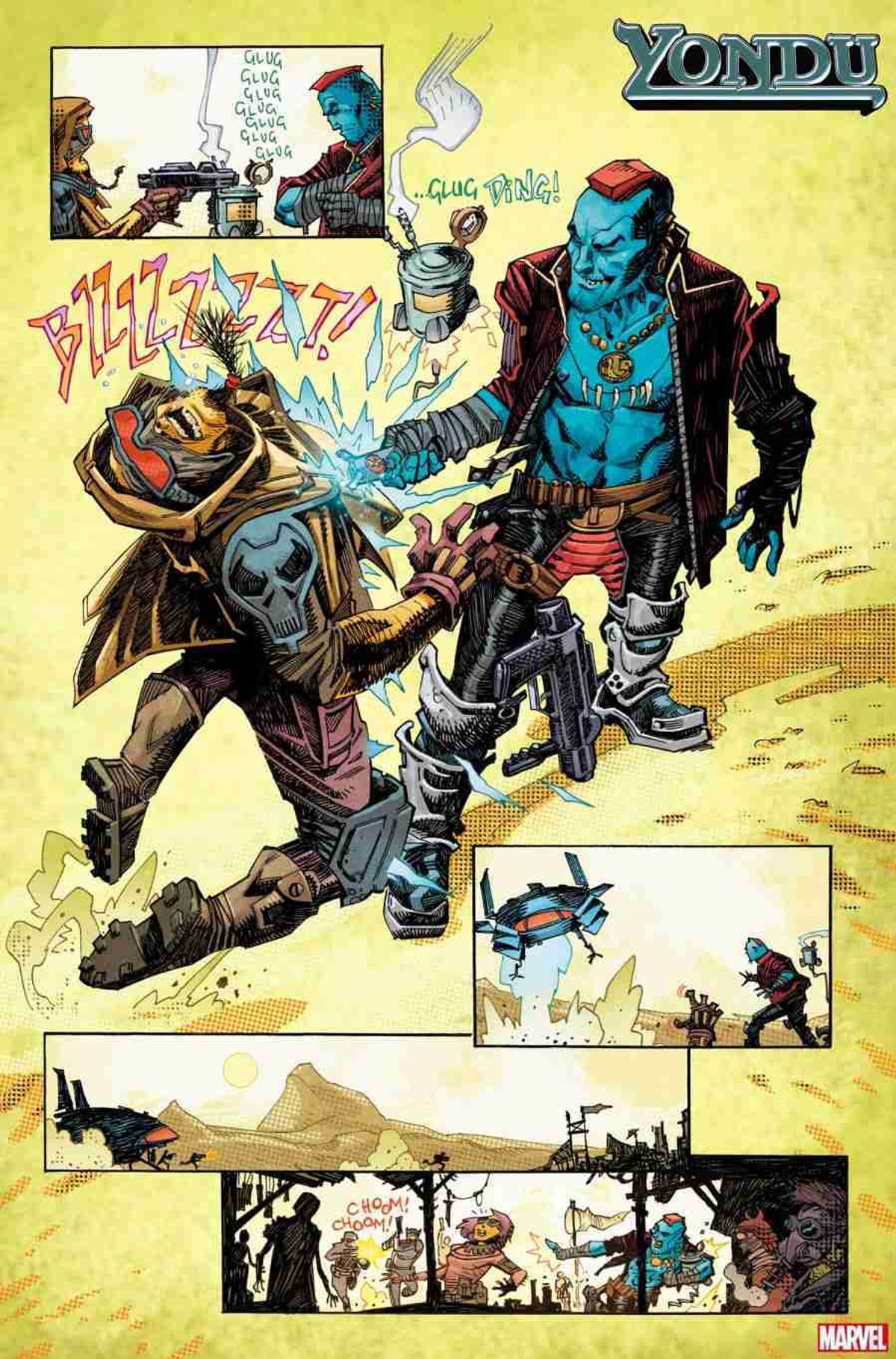 Io e Lonnie facciamo squadra con uno dei nostri disegnatori preferiti, John McCrea, e con Mike Spicer che è un meraviglioso colorista. Creeremo una storia comica che parla di quel che succede quando Yondu si monta la testa e si ritrova ricercato dall'intero Universo Marvel. E ci sarà solo una persona che potrà salvarlo: Yondu stesso.