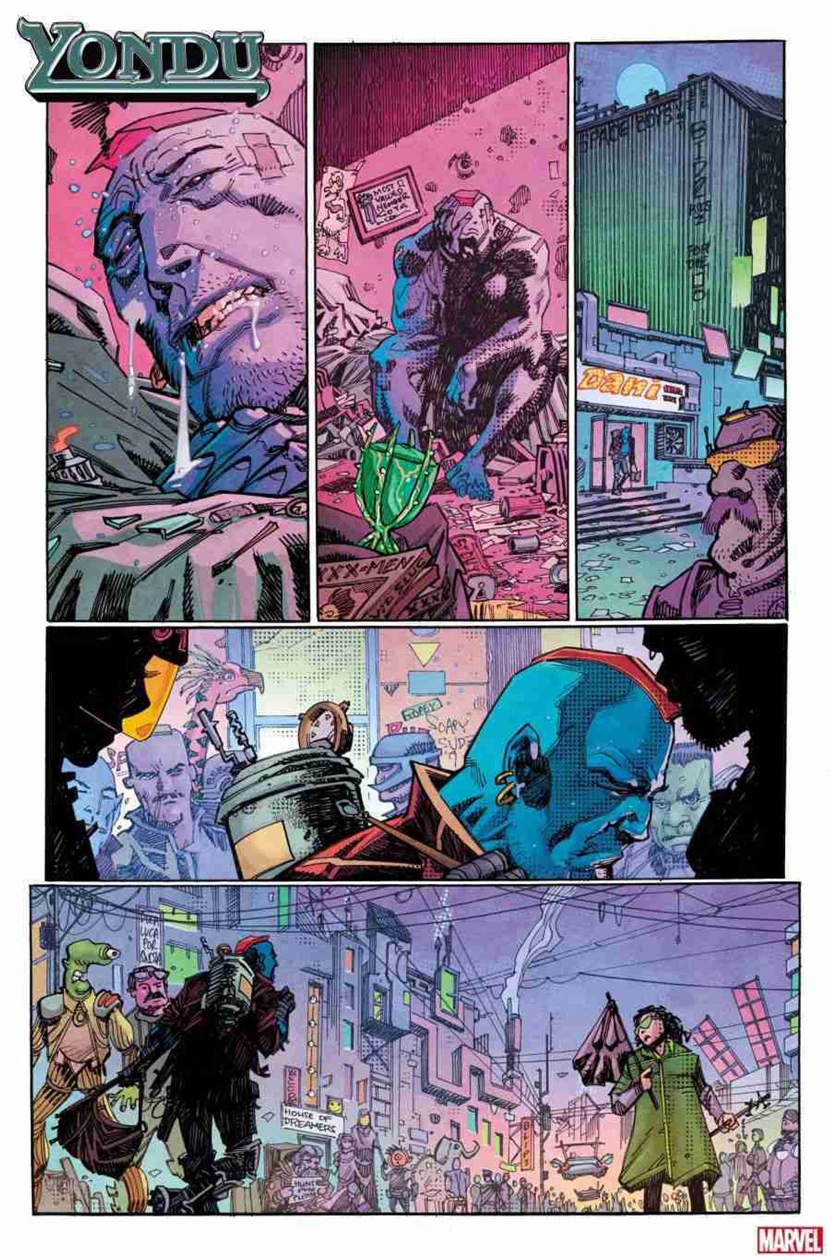 Si tratta di un personaggio che opera in un'area fortemente diversa dal novantanove percento dei contesti in cui sono calati gli altri eroi e criminali Marvel, perché la sua vita avviene nelle periferie degradate dell'universo, in luoghi in cui la maggior parte delle persone non vuole nemmeno mettere piede.Da questo punto di vista, i lettori faranno la conoscenza di un mondo che hanno amato per decenni ma visto sotto una lente del tutto nuova, uno sguardo ruvido, grottesco e comico. Faremo capire sin da subito che si tratta di una storia di genere crime molto ironica e fatta di errori reiterati, dove niente va mai per il verso giusto per il vecchio Yondu. Il risultato è un cocktail che contiene in parti uguali Breaking Bad, Arma letale e Non è un paese per vecchi.