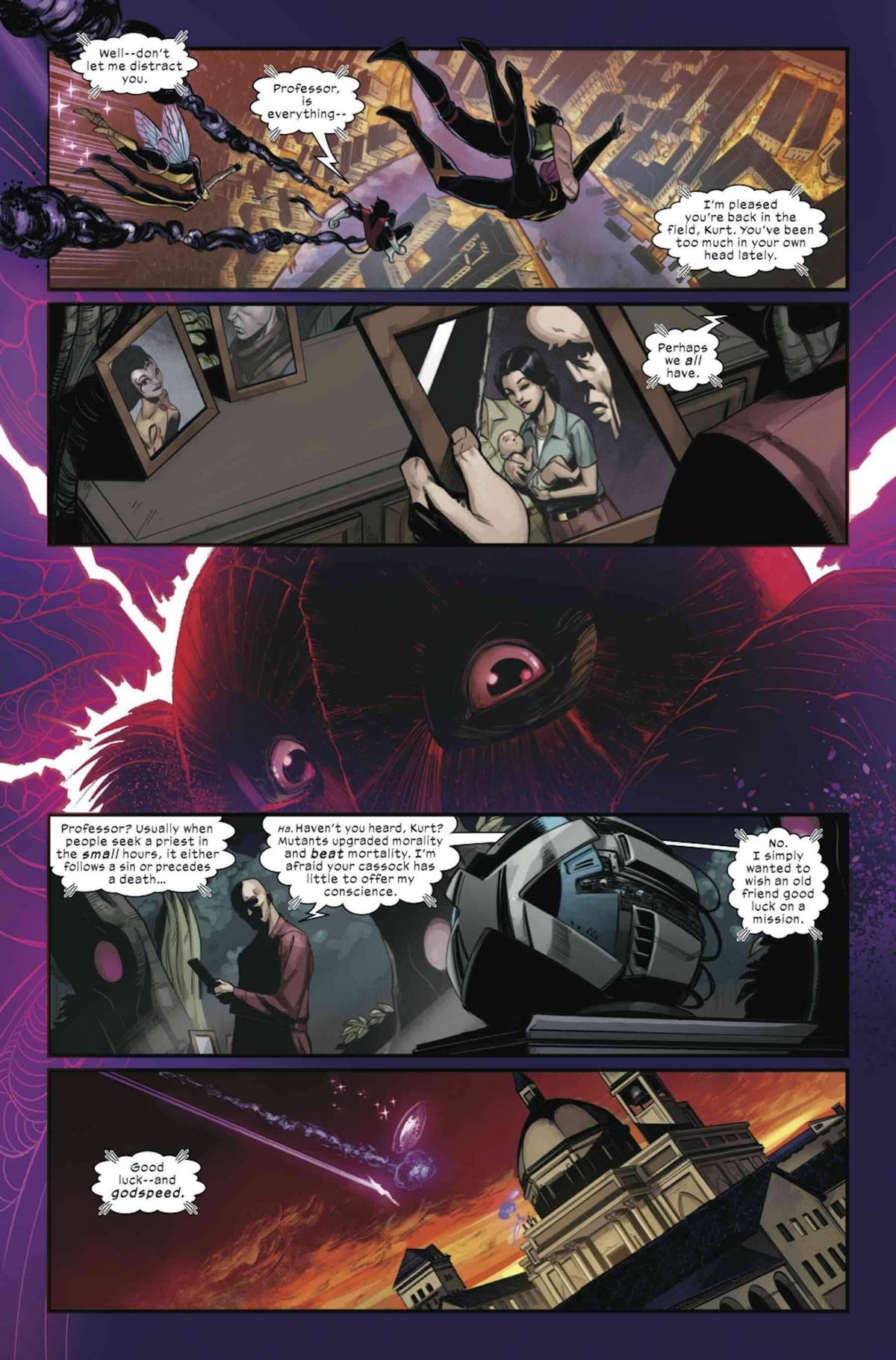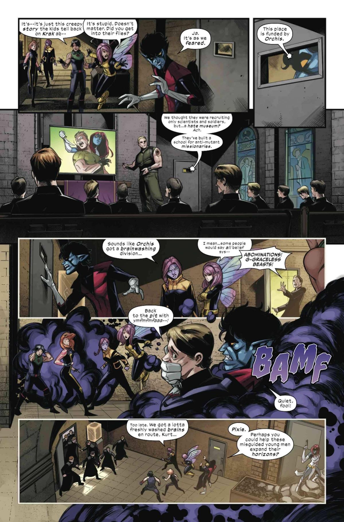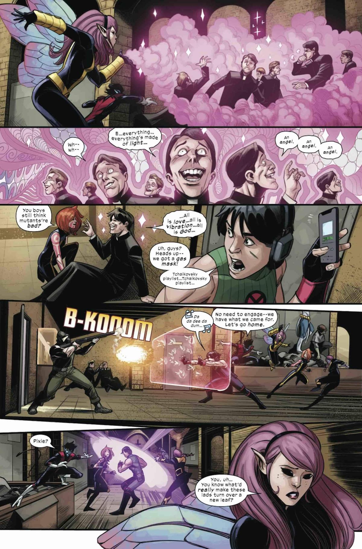 In questa nuova fase della rivoluzione mutante orchestrata da Jonathan Hickman, vedremo la nuova nazione degli Homo Superior espandere i propri interessi e consolidare la loro posizione, aprendo la strada verso il loro futuro. Tra i vari temi trattati, gli autori delle X-testate affronteranno anche quello della religione e della fede; in particolare, sulle pagine di Way of X, sarà Nightcrawler a guidare una squadra molto peculiare con la quale approfondire la spiritualità mutante.In questi ultimi giorni, Spurrier ha iniziato a diffondere tramite Twitter alcuni teaser che hanno creato sempre maggiore curiosità intorno al titolo: dal testo “We need a new way”, che accompagna ogni immagine promozionale, a vignette; in una di questa, appare quella che dovrebbe essere Wanda Maximoff, immortalata mentre pronuncia la celebre frase “No more mutants”.Adesso, la Marvel ha diffuso un’anteprima delle prime pagine di Way of X #1, in uscita negli Stati Uniti il 21 aprile. Trovate le tavole in fondo all’articolo dopo la sinossi dell’albo d’esordio: