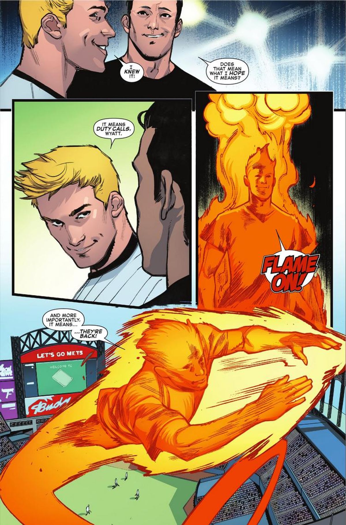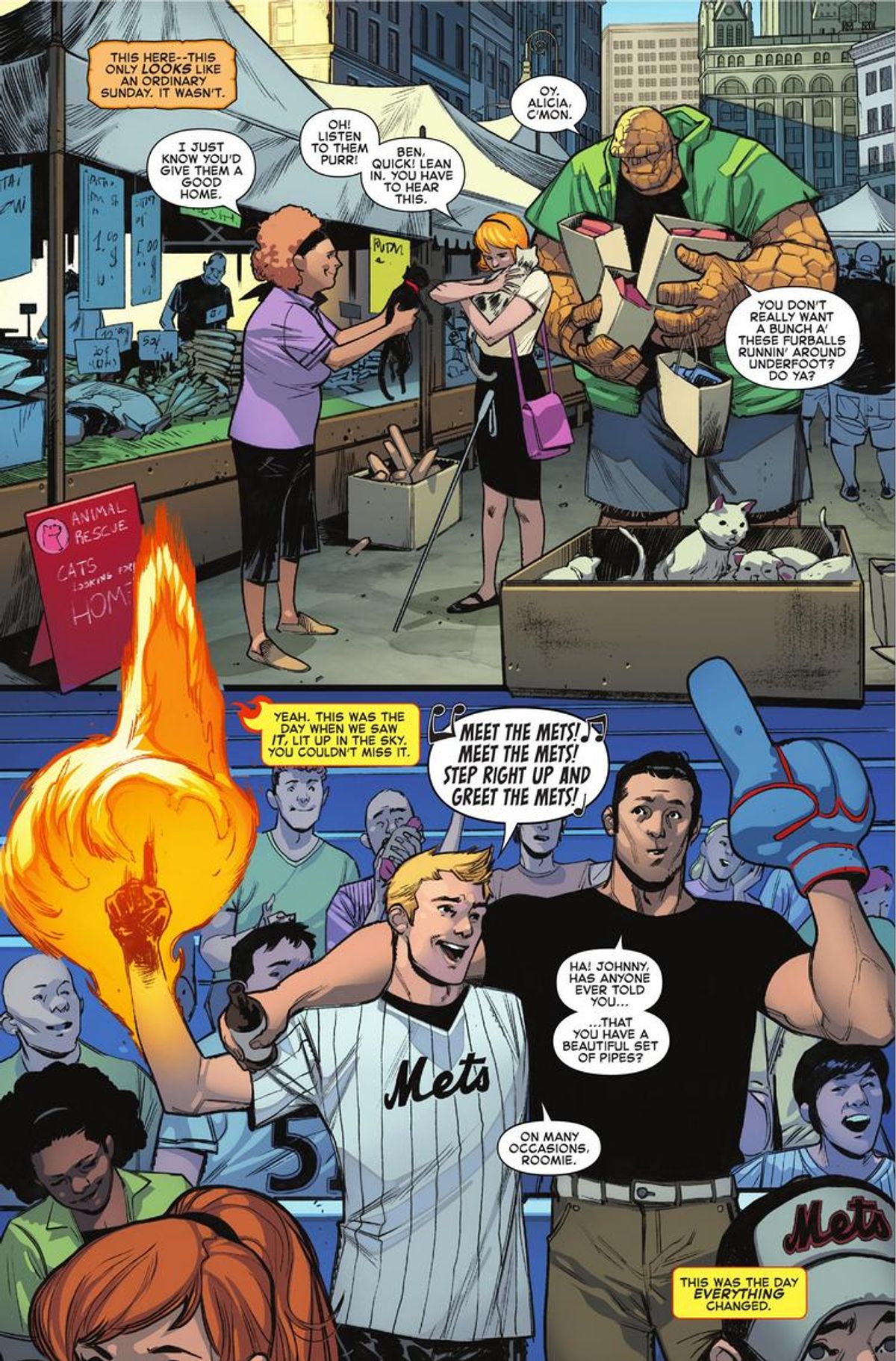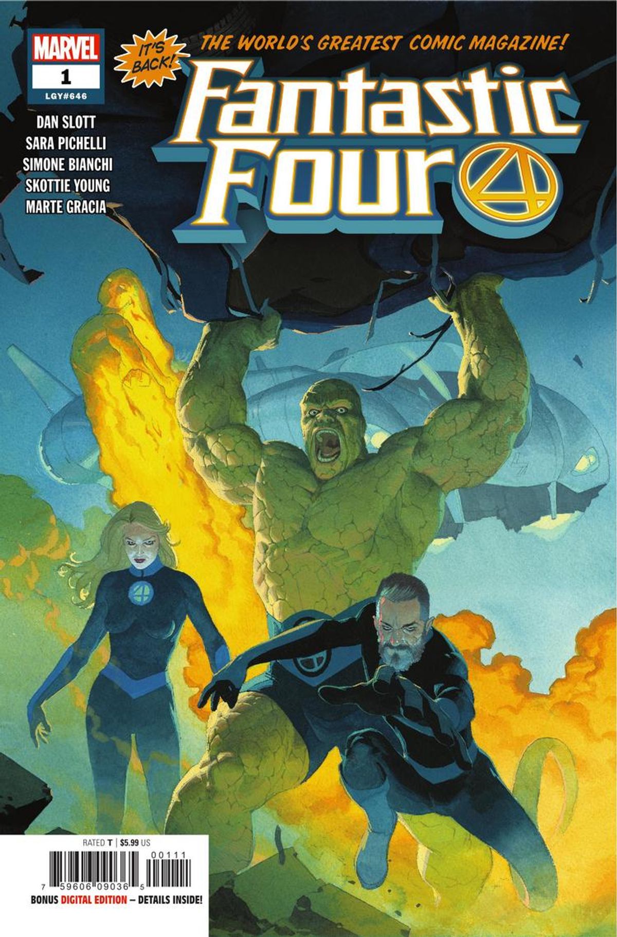 Vi ricordiamo che la nuova serie dei Fantastici Quattro arriverà in Italia all'inizio dell'anno prossimo, sotto le insegne di Panini Comics. Nel frattempo, potete seguire la avventure della Cosa e della Torcia Umana, alla ricerca degli altri membri del gruppo, sulle pagine di Marvel 2-in-Uno.A grande richiesta, il più grande fumetto del mondo è tornato! Dalla fine di Secret Wars c’era un vuoto nell’Universo Marvel. una lacuna che nessun altra squadra poteva colmare. Per il mondo è giunto il tempo di andare avanti. Ma può davvero farlo? Una decisione importantissima da parte della Cosa! Una dichiarazione storica della Torcia Umana! Una fervida chiamata alle armi convoca il Dottor Destino! E un segnale nel cielo che annuncia il ritorno della speranza nell’Universo Marvel! In tutto ciò, Alicia Masters che adotta dei gattini! Che carini! In più, l’Uomo Impossibile! Con storie aggiuntive disegnate da Simone Bianchi e Skottie Young! Se potete leggere un solo fumetto Marvel questo mese, dev’essere questo!